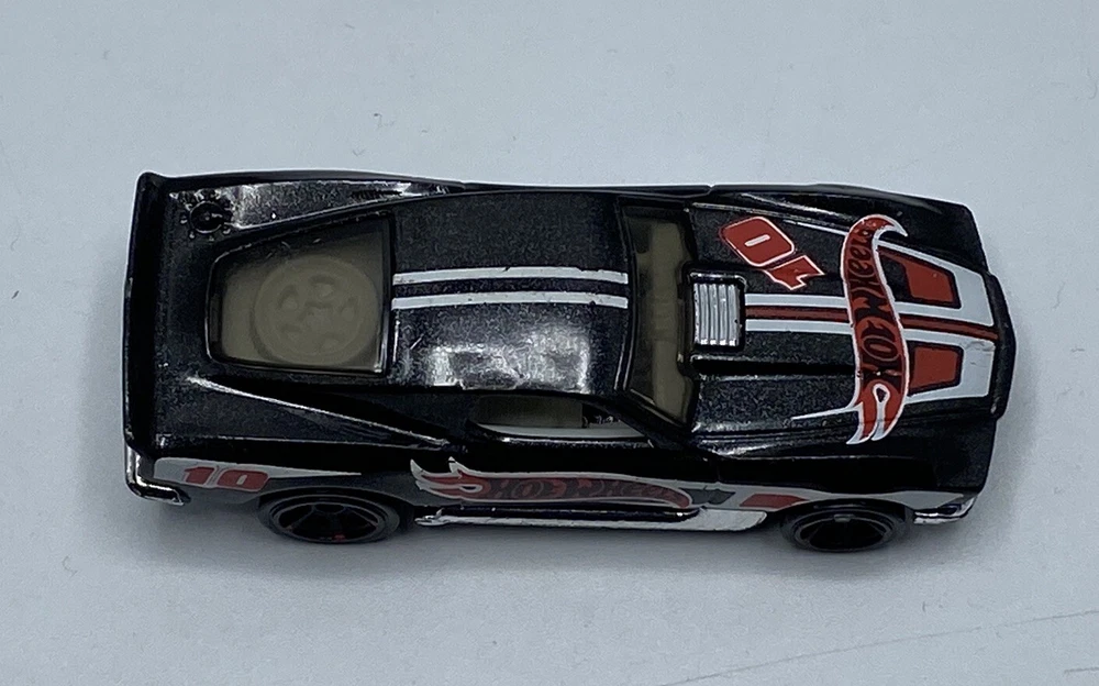 Hot Wheels Blvd Bruiser black muscle car. This die-cast vehicle is used and has been played with. Plastic chrome on front and back are have minor imperfections. Made in Malaysia.