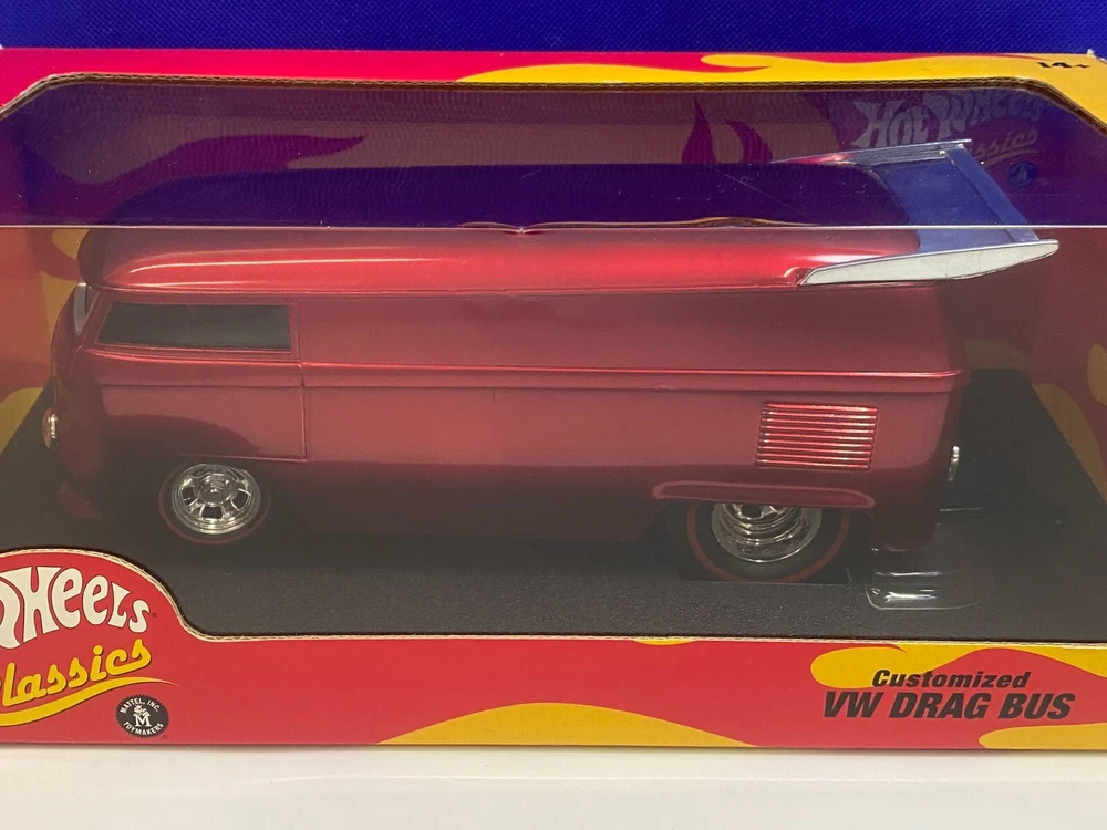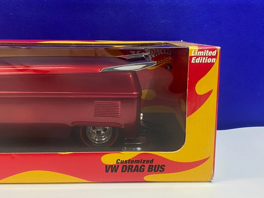 UP FOR YOUR CONSIDERATION IS A HOT WHEELS CLASSICS 1/18 SCALE RED CUSTOMIZED VW DRAG BUS. ITEM IS NEW IN PACKAGE. CAR LOOKS TO BE IN NICE CONDITION. BOX HAS A SPOT ON THE BACK AS PICTURED, OTHERWISE IN GOOD CONDITION. CHECKOUT PICTURES FOR FURTHER DESCRIPTION. THE ITEM IN THE PICTURES IS THE ITEM YOU WILL RECEIVE. WILL BE PACKAGED AND SHIPPED WITH CARE. THANKS FOR LOOKING.. I PACK ALL ORDERS WITH CARE AND SHIP THEM IN A TIMELY MANNER TO ENSURE SAFE ARRIVAL OF YOUR GOODS. IF SOMETHING ARRIVES AND IS NOT TO YOUR SATISFACTION, PLEASE LET ME KNOW AND I WILL MAKE IT RIGHT. FEEDBACK WILL BE GIVEN TO BUYERS, WHEN FEEDBACK IS GIVEN TO SELLER. THANK YOU FOR YOUR BUSINESS.