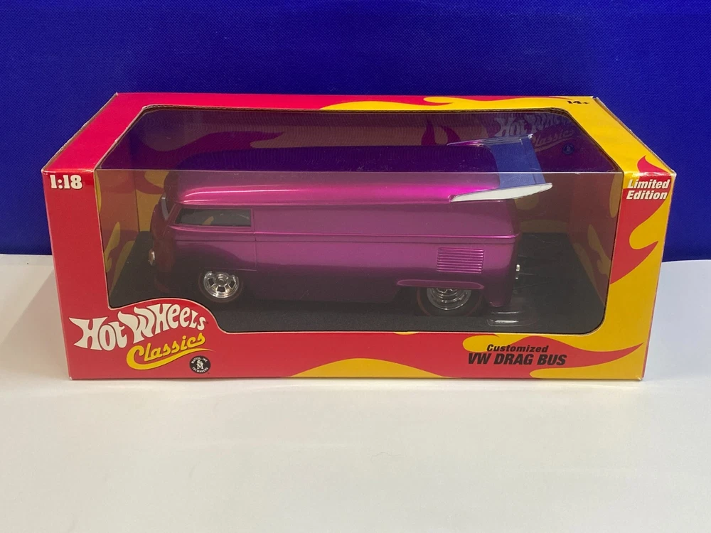 UP FOR YOUR CONSIDERATION IS A HOT WHEELS CLASSICS 1/18 SCALE SPECTRA FLAME PINK CUSTOMIZED VW DRAG BUS. ITEM IS NEW IN PACKAGE. CAR & BOX LOOK TO BE IN NICE CONDITION. CHECKOUT PICTURES FOR FURTHER DESCRIPTION. THE ITEM IN THE PICTURES IS THE ITEM YOU WILL RECEIVE. WILL BE PACKAGED AND SHIPPED WITH CARE. THANKS FOR LOOKING.. I PACK ALL ORDERS WITH CARE AND SHIP THEM IN A TIMELY MANNER TO ENSURE SAFE ARRIVAL OF YOUR GOODS. IF SOMETHING ARRIVES AND IS NOT TO YOUR SATISFACTION, PLEASE LET ME KNOW AND I WILL MAKE IT RIGHT. FEEDBACK WILL BE GIVEN TO BUYERS, WHEN FEEDBACK IS GIVEN TO SELLER. THANK YOU FOR YOUR BUSINESS.