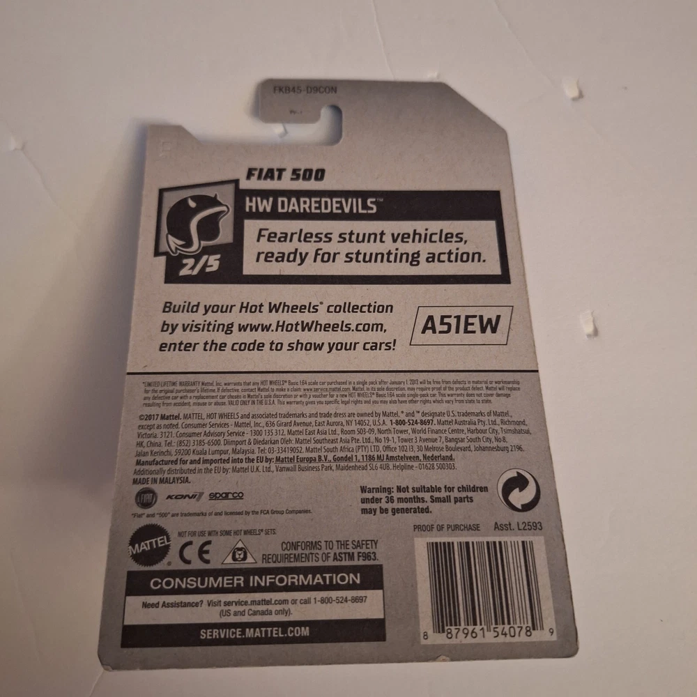 This Hot Wheels car is a must-have for any collector or fan of the brand. It features a colorful design and is made of high-quality diecast material, ensuring its durability. The car is part of the Hot Wheels Daredevils series and is a 1:64 scale model of a Fiat 500. In addition, this car is a Super Treasure Hunt edition and comes in an unopened box. It is recommended for children aged 3-4 years and is suitable for both boys and girls. This Hot Wheels car was manufactured in 2017 and is a great addition to any collection.