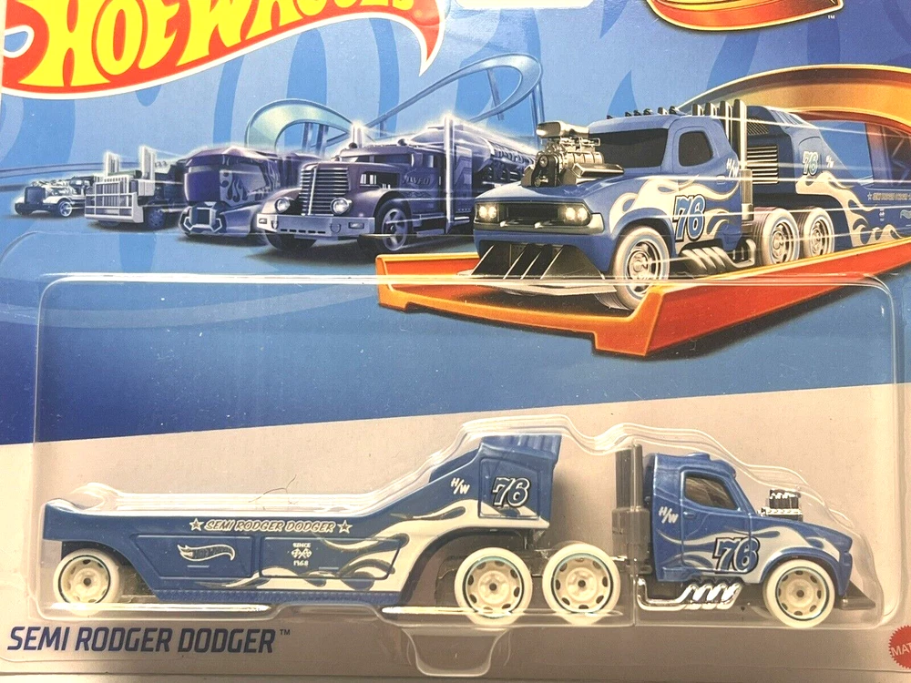 This limited edition Hot Wheels Track Fleet Semi Rodger Dodger is a must-have for any diecast car collector. The blue car transporter, with a scale of 1:64, features the iconic Rodger Dodger model and is made of high-quality diecast material. The unopened box ensures that this Hot Wheels car is a perfect addition to your collection without any wear and tear. The car transporter is a part of the Hot Wheels Track Fleet series and is manufactured in 2024. This contemporary manufacture toy vehicle is perfect for kids and adults alike who love collecting Hot Wheels cars. The vehicle year is 2024, and it belongs to the character family of Hot Wheels. Add this semi-truck to your collection today! VERY NICE NEAR MINT CARD AND BLISTER ITEM IS FROM AN ADULT COLLECTOR SEE PICS FOR EXACT ITEM YOU WILL GET SAME DAY SHIPPING AFTER ORDER IS PAID (8-4) C/T NEXT DAY SHIPPING FOR ORDERS PLACED AFTER (4:00 PM C/T) COMBINED SHIPPING FOR MULTIPLE PURCHASES - PLEASE READ If Buying More Than 1 Item, Please Use The Shopping Cart Feature T o Ensure All Your Items Will Ship Together. I Will Send You A Combined Invoice For All Items. Please Don't Pay Separately, No Refunds! Thank You. I Always Ship Everything in a Cardboard Box. Multiple Items will be Individually Wrapped. Look at Photo's Carefully. No Returns. Items are from an Adult Collector. Check my feedback and buy with confidence!