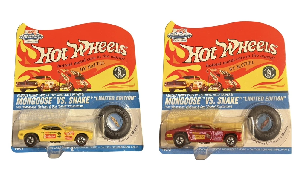 HOT WHEELS VINTAGE COLLECTION SNAKE VS MONGOOSE II 2 CAR SET 1995 1/64 NHRA