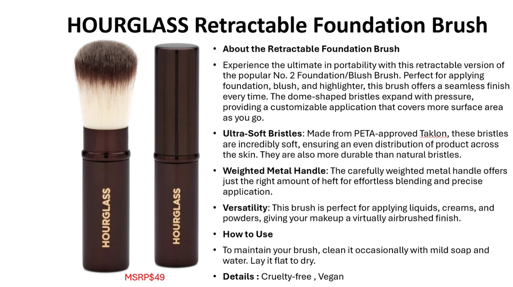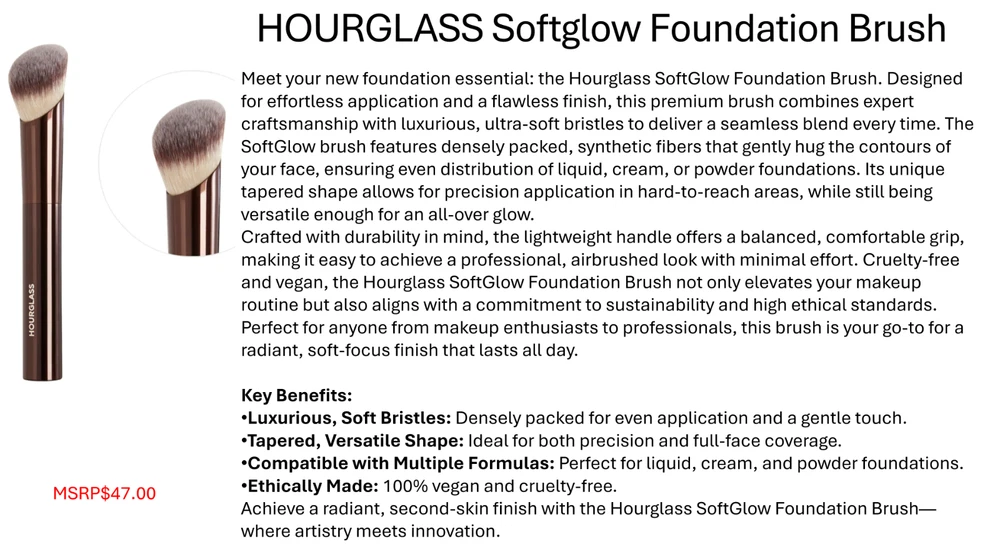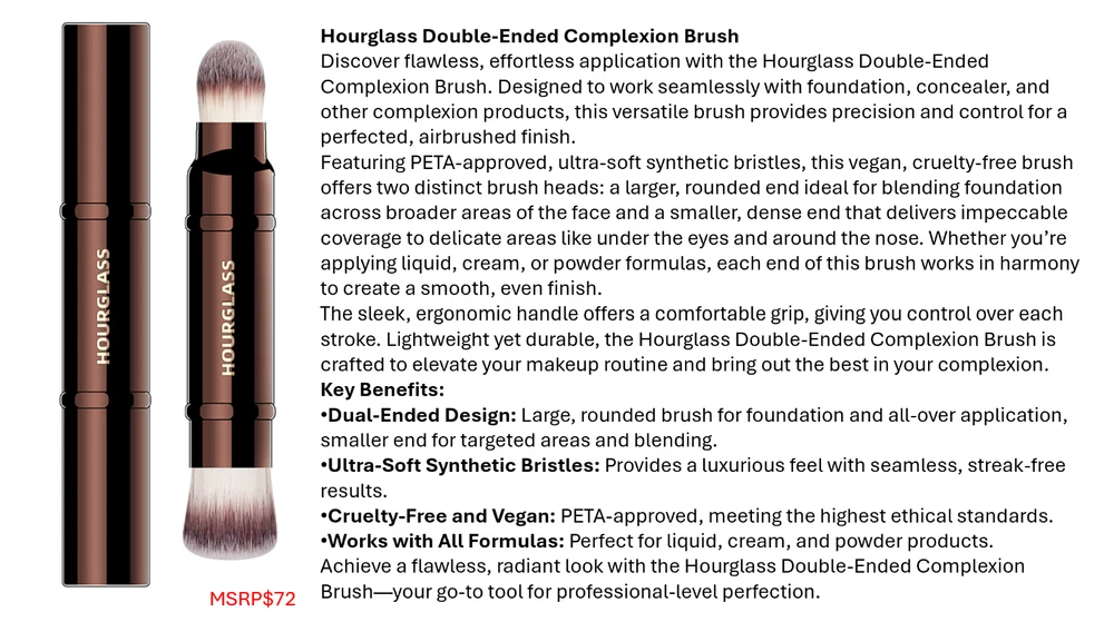 Looking to upgrade your brush collection without breaking the bank? These HOURGLASS makeup brushes are designed for flawless blending, buffing, and detailing – a must-have for any beauty lover. Please note, All 23 Hourglass brushes are brand new in box, except Model #15, which is brand new without box. ✨ Bundle & Save Add more brushes to your cart → pay less on shipping Buy 10+ brushes and receive a FREE brush bag to keep your tools neat and travel-ready 💎 Why you’ll love them: ✔️ Luxury brushes at a fraction of the retail price ✔️ Perfect for building a complete set or replacing old favorites ✔️ Extra value with our free gift on larger orders 📦 Fast shipping, carefully packed 💖 Create your own custom set & snag your freebie when you go big! Welcome to Brush Masters Empire At Brush Masters Empire, we are proud to be your ultimate eBay destination for premium makeup brushes . Add us to your favorites to stay updated on exclusive sales, promotions, and markdown events. We restock and add new products daily, so be sure to check back often. Special Savings Use Add to Cart to mix and match across Brush Masters Empire and enjoy additional discounts on multiple items For combined shipping requests, please contact us at any time. Our team typically responds within 10 minutes to provide a tailored shipping discount Complimentary Gift Every order includes a premium skincare sample, randomly selected, as a token of our appreciation Product Details 100% Authentic products, always guaranteed New In Box (NIB) and factory sealed unless otherwise noted Wide selection of brushes: foundation, powder, lip, eye, concealer, contour, blush, highlight, and more Some items are sourced from overstock, shelf pulls, prior designs, discontinued lines, or packaging updates. Please note that certain items may not include original store display boxes All items are stored in a climate-controlled, smoke-free environment Pictures are part of the description. Colors may vary slightly depending on lighting and display settings Size: Full-size assortment available Shipping and Handling Fast and Free Domestic Shipping. Securely packed with tracking confirmation. Orders dispatched same or next business day Expedited and Express Options available for faster delivery View Details International Shipping available through the eBay Global Shipping Program. Duties, taxes, and fees are calculated upfront at checkout with no additional payments upon delivery Our Commitment Over 50,000 products sold on eBay since 2014. A trusted and established seller with a proven track record Each product undergoes meticulous inspection to disclose any imperfections. If you expect flawless retail packaging, we recommend department store options Every item is thoroughly inspected, cleaned, and disinfected prior to shipping Accurate descriptions and secure packaging guaranteed. You will never receive damaged or misrepresented items from us We prioritize transparency with clear images and detailed policies, empowering you to make informed decisions Return Policy Returns accepted within 30 days on new and unopened items only To qualify for a full refund, items must be returned unused and in original condition with: Plastic sleeve Bristle protector Original box or packaging with tag attached No signs of use, damage, or missing parts Please return items in their original box to ensure safe transit and resellable condition A 20% restocking fee applies to non-defective returns not meeting the above requirements If we made an error, we will resolve it at no cost to you Once we receive the item in original condition, your refund will be processed promptly Important Notes Some items may be discontinued, older stock, or vintage. This will always be clearly stated in the listing Brush Masters Empire is not affiliated with, endorsed by, or authorized by any brand we sell. Trademarks belong to their respective owners and are used strictly for identification and descriptive purposes Results may vary by individual. Always patch-test products before full use to check for potential allergies Complimentary samples may be current or older stock. If you are uncomfortable using them, please discard Shop With Confidence 100% Authenticity Guaranteed Professional and responsive customer service Fast, reliable, and secure shipping Thousands of satisfied customers worldwide Thank you for choosing Brush Masters Empire. We look forward to serving you with the professionalism and care you deserve.
