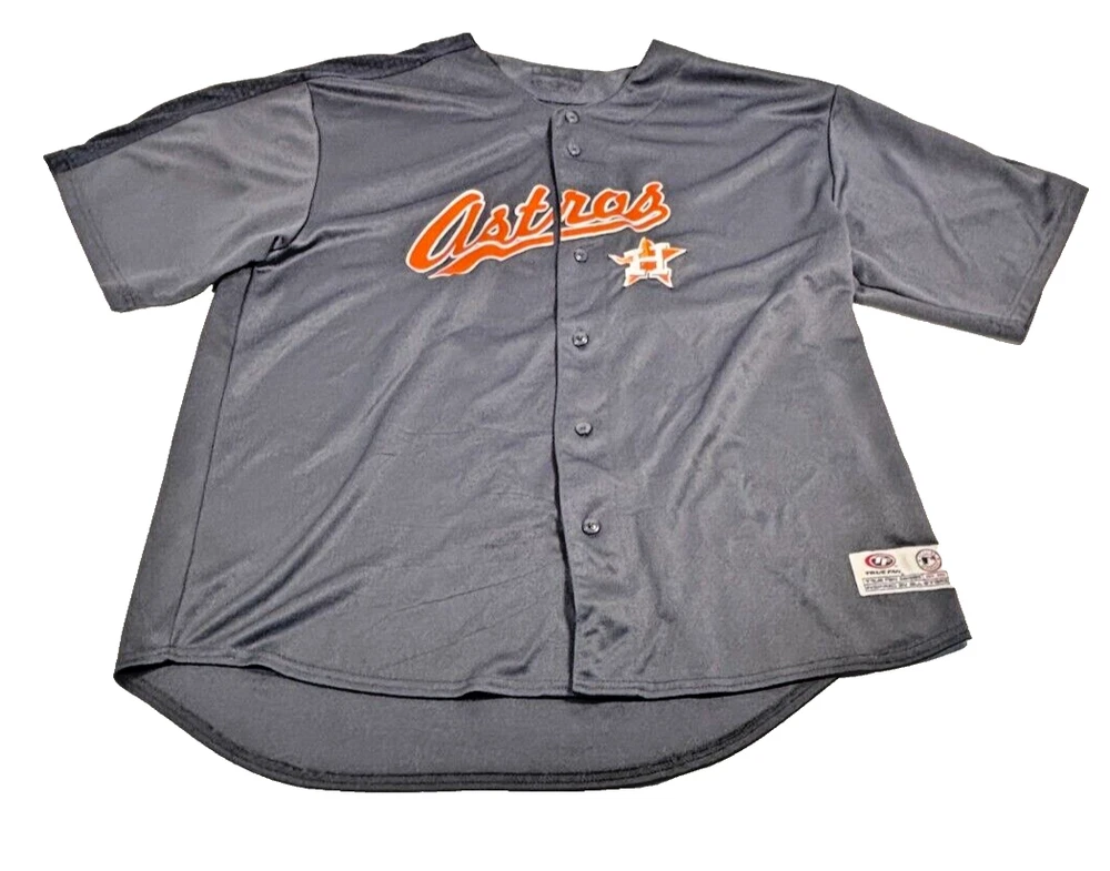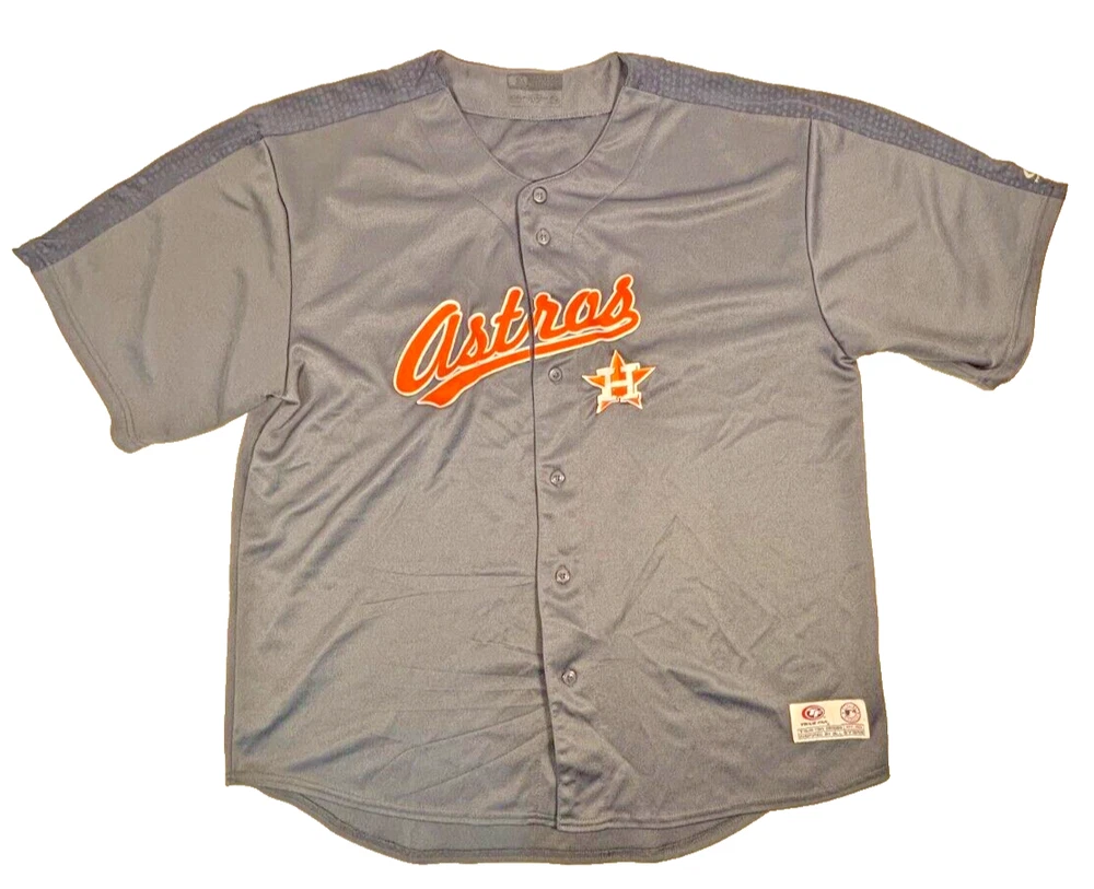 HOUSTON ASTROS True Fan MLB Official Men's Jersey Gray Writing Logo 2XL Show your Houston Astros pride with this officially licensed True Fan MLB jersey. The gray color and writing logo design make it a stylish addition to any fan's collection. Made from high-quality materials, this jersey is perfect for game day or everyday wear. It's available in size 2XL and is designed specifically for men. The jersey is made in China and features the Houston Astros team logo, making it a must-have for any true fan.