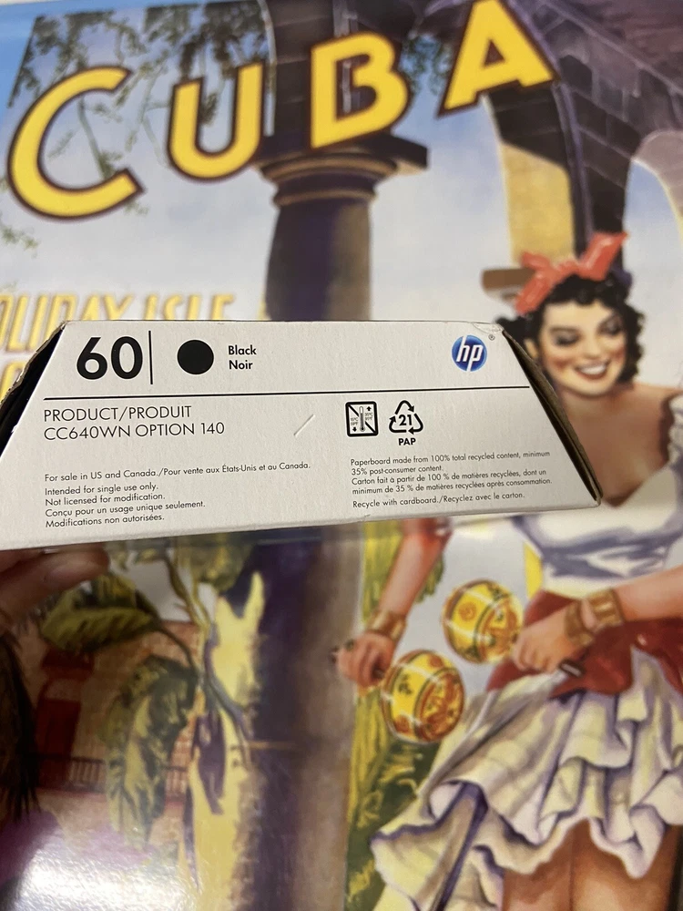 HP 60 Black Ink Cartridge Genuine Original New Unopened
