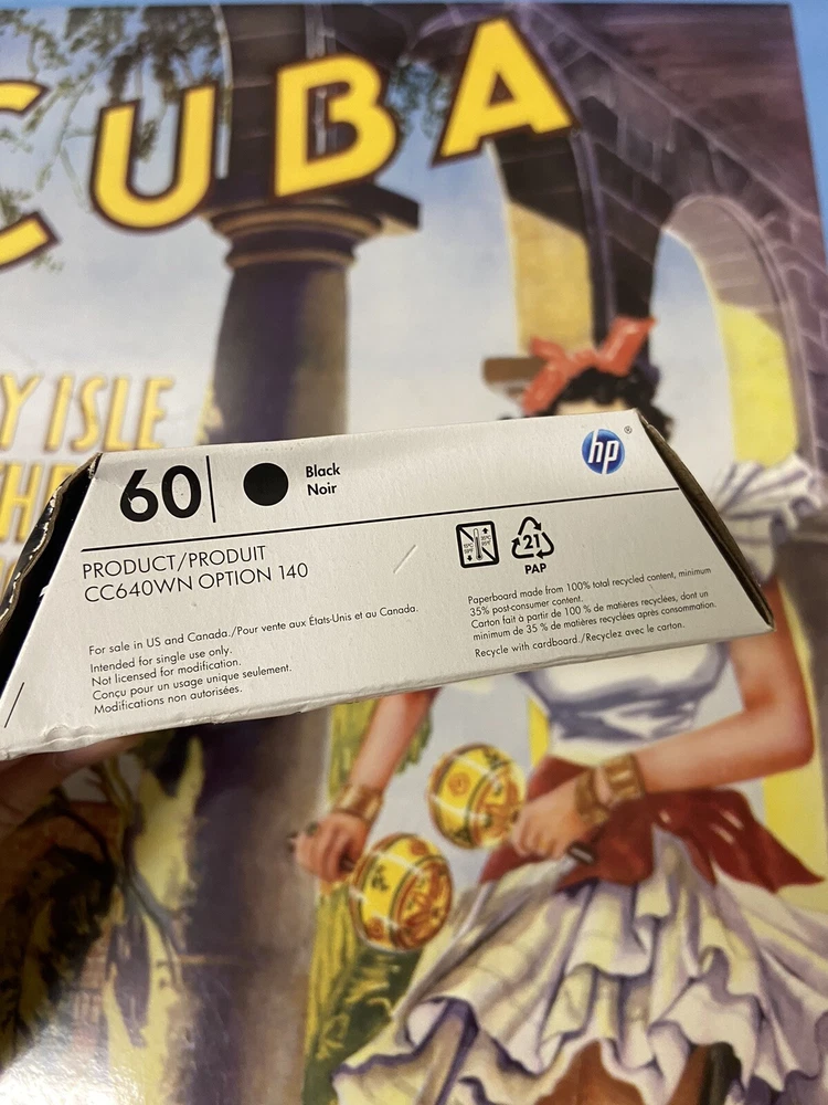 HP 60 Black Ink Cartridge Genuine Original New Unopened