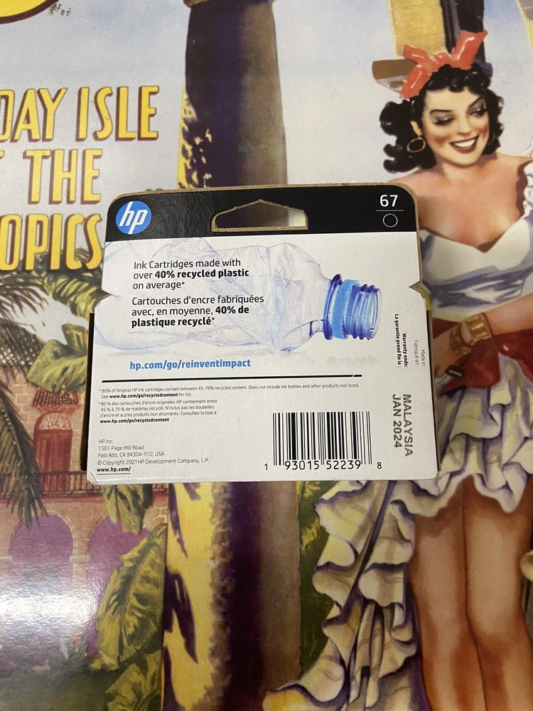 HP 67 Black Original Ink Cartridge New Unopened Jan 2024
