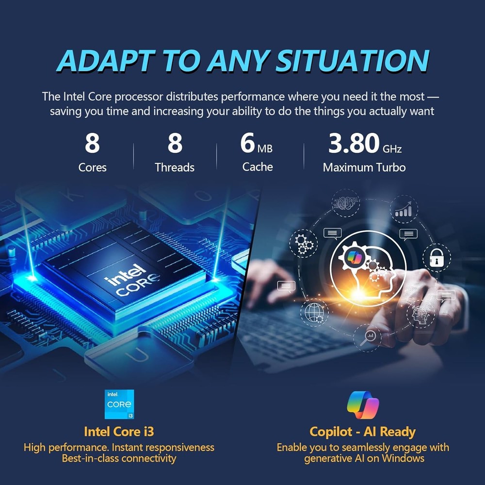 Newly Upgraded HP 17-cn3083st Laptop 17.3 inches Intel Core i3 N305 Porcessor 1.8GHz(up to 3.8GHz, 8 cores and 8 threads) , Intel UHD Graphics UP TO 32GB RAM 4TB SSD, Full HD (1920×1080), 7 to 8 hours, Bluetooth 5.4 & WiFi 6 , No Touchscreen, Windows 11 Pro Hurry and seize the opportunity to own our high-performance laptop at an unbeatable price! As we make room for exciting new products, we're offering our best price ever on this remarkable device. Don't miss out - purchase yours before it's gone! Fast Shipping / Free Shipping within 48 Contiguous States Product Overview SPEEDY 8-CORE INTEL® CORE™ i3-N305 PROCESSOR FOR EVERYDAY TASKS - Get the performance you need with an Intel® processor at the affordability you want to connect, learn, and play anywhere. ROOMY 512GB|1TB|2TB|4TB PCIe NVMe M.2 SSD - Achieve up to 15x faster performance than a traditional hard drive, with ample space to store project files, important documents, and more. INTUITIVE AND EASY WINDOWS 11 PRO - The rejuvenated Windows 11 operating system connects you to your favorite people, news, games, and content in a natural and user-friendly way. HIGHER BANDWIDTH AND PERFORMANCE WITH 8GB|16GB|32GB DDR4 RAM - Boost your multitasking performance to better maintain your daily work life balance. 17.3" FHD IPS ANTI-GLARE DISPLAY - Enjoy vibrant, crystal-clear images with 178º wide-viewing angles for sharing your screen with colleagues EFFORTLESSLY CONNECTED - Faster wireless speeds and improved performance with Wi-Fi 6 and Bluetooth® 5.4 wireless card. ALL-DAY BATTERY - Up to 7 hours mixed usage battery life with HP Fast Charge, which goes from 0 to 50% charge in approximately 45 minutes. MICROSOFT COPILOT AI TECHNOLOGY - Access with a dedicated Copilot key, and kickstart your productivity with complementary intelligent assistance and answers HD CAMERA WITH PRIVACY SHUTTER - Video chat in vibrant clarity, even in low light. Close the physical shutter when not in use. CHARGE 50% IN 45 MINUTES - Take on the day without being tethered to an outlet, with HP Fast Charge quick recharge. Choose your upgrades We specialize in providing professional upgrades and customization for computers. Note that if you opt for customization of your computer from the aforementioned list, our engineers will open the manufacturer's box to install upgrades and test the system. Upgrade Memory for Multi-tasking : 8GB|16GB|32GB DDR4 RAM Upgrade SSD for Storage and Speed : 512GB|1TB|2TB|4TB SSD Specifications Quick Info AI Enabled AI Enabled Screen Resolution 1920x1080 Processor Type Intel Core i3 Screen Size (inches) 17.3 Installed RAM 8GB|16GB|32GB Hard Drive Type SSD Battery Life 7 to 8 hours Weight (lbs.) 6.54 Computer Operating System Windows 11 Pro SSD Capacity 512GB|1TB|2TB|4TB connectivity Wireless Connectivity 802.11 a/b/g/n/ac/ax Network Card Wi-Fi 6 (2x2) and Bluetooth 5.4 wireless card Number of USB Ports 3 Number of DVI Ports 0 Number of Video Output Ports 1 Bluetooth Compatible Yes Number of Display Ports 1 Number of HDMI Ports 1 dimensions Depth in Inches 20.47 Width in Inches 2.72 Height in Inches 13.58 Laptop Weight 4 to 4.9 lbs. display Computer Screen Display Type LED environmental ENERGY STAR certified Yes EcoID Yes, product meets Staples criteria for environmental features to earn the Eco-ID mark. Learn more at EcoIDProgram.com EPEAT verified EPEAT Gold verified features Backlit Keyboard No 2-in-1 Not 2-in-1 Touch-Screen No Touch-Screen graphics Laptop Video Graphics Intel® UHD Graphics Graphics Processor Intel Core i3 Computer Graphic Card Type Integrated memory Expandable Memory (GB) 0 CPU Cache Size 6 MB L3 cache power Laptop Battery Type 3-cell, 41 Wh Li-ion battery processor NPU No Processor Core Generation i3-N305 Processor Speed (Ghz) 3.8 Processor Speed (Up To Ghz) 1.8 to 3.8 GHz warranty Warranty 1 Year additional details Series or Collection Omni Book 5 Family Model # 17-cn3083st Laptop Refurbished No Computer Audio HD Audio with stereo speakers Laptop Style Notebook We can be contacted at any time through eBay messages if you have any questions, comments or product requests. We will respond to you within 24 hours and do our best to help you out! We encourage our customers to contact us with any questions or concerns! We'd like to be sure you are completely satisfied with your purchase.