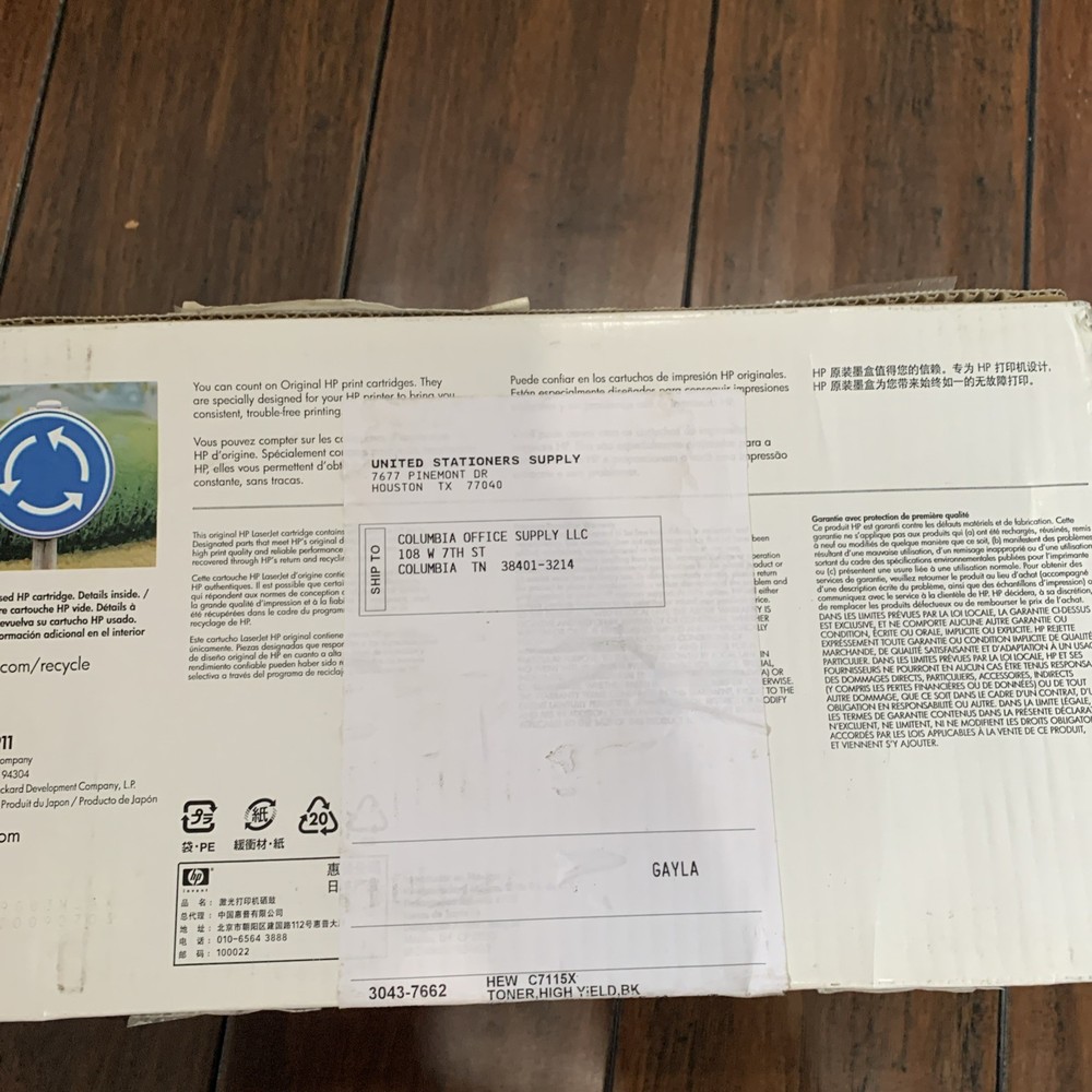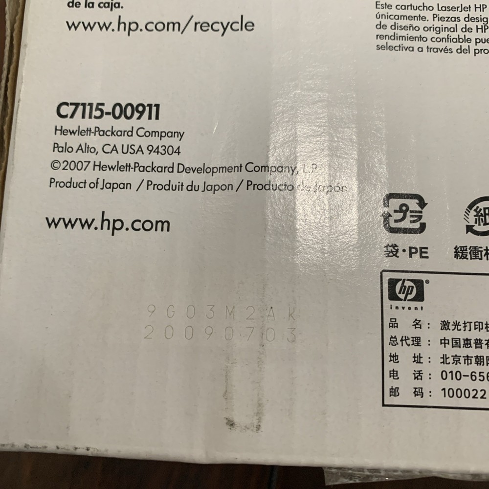 Original OEM:YesImportant Note:Box Is Factory SealedType:HP Laser Jet Print Cartridge, Print CartridgeColor:BlackUPC:0725184518461Theme:Print Cartridge, Printer Cartridge, Toner CartridgeDate:2007Number:5774A001Compatible Brand:For HPMPN:C7115XBox Size:Approx. 13-1/2" x 7-1/2" x 4-3/4"Brand:HPCondition Note:Box Is Not Mint, Age and WearModel:2007Weight:2 to 3 PoundsCompatible With:HP Laser Jet 1200, 1220, 3300, 3380Product Of:JapanSubject:HP Print Cartridge, HP Printer Cartridge, HP Toner CartridgeListing Includes:One Cartridgegtin13:0725184518461Features:High Volume Printing