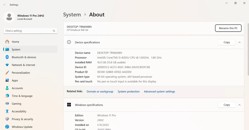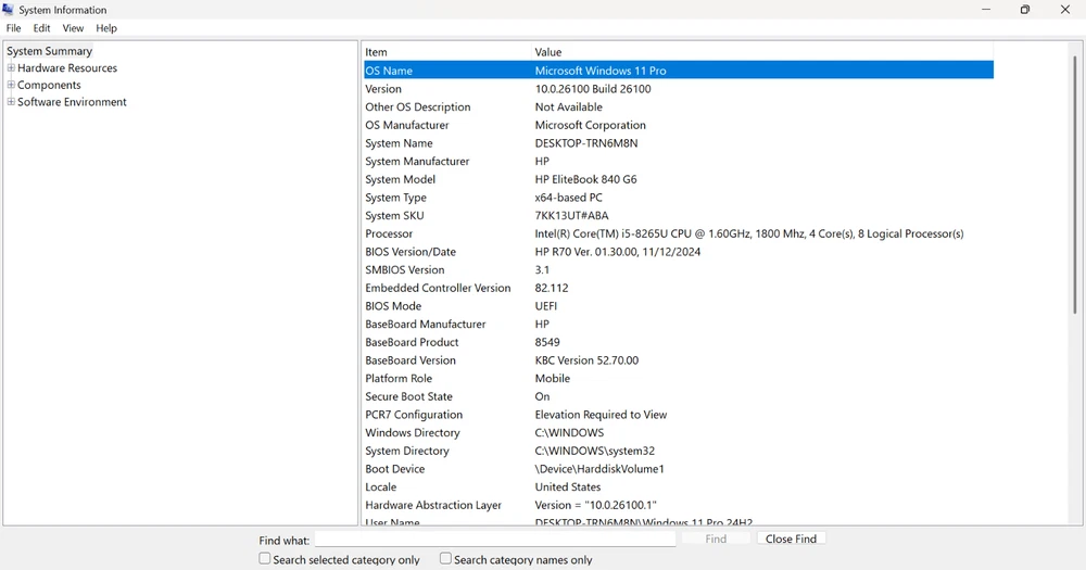 This business class laptop has a brand new 512GB NVME M.2 SSD Gen3x4|2280. The cosmetic is not perfect so check the photos carefully. The outer covers have some minor scratches/dents circled in red markups for easy indentation. The anti-glare/matte non-touchscreen has a light scuff on it circled in blue markup for easy identification. Notes: This laptop comes with Power Cord and AC Power Adapter. Latest Windows 11 Pro version 24H2 with all updates including BIOS, Firmware and Driver(s) installed ready to be use right out of the box. Battery Report: Design Capacity: 50,012 mWh Full Charge Capacity: 44,179 mWh Cycle Count: 70 out of 500 charge life cycle Battery Manufacture Date: 04/10/2020 Laptop Born Date: 11/20/2019 The HP EliteBook 840 G6 7KK13UT specifications include: Processor: Intel Core i5-8265U (8th Gen) CPU @ 1.60GHz 1800 Mhz 4 Core(s), 8 Logical Processor(s) Graphics: Intel UHD Graphics 620 Display: 14.0”, Full HD (1920 x 1080) - Anti-Glare/Matte Non-TouchScreen Storage: Brand New 512 GB SSD NVME M.2 Gen3x4|2280 Memory: 16GB DDR4, 2400 MHz Keyboard: BackLite Keyboard Software (OS): Windows 11 Pro 24H2 Weight: 1.48 kg (3.3 lbs)