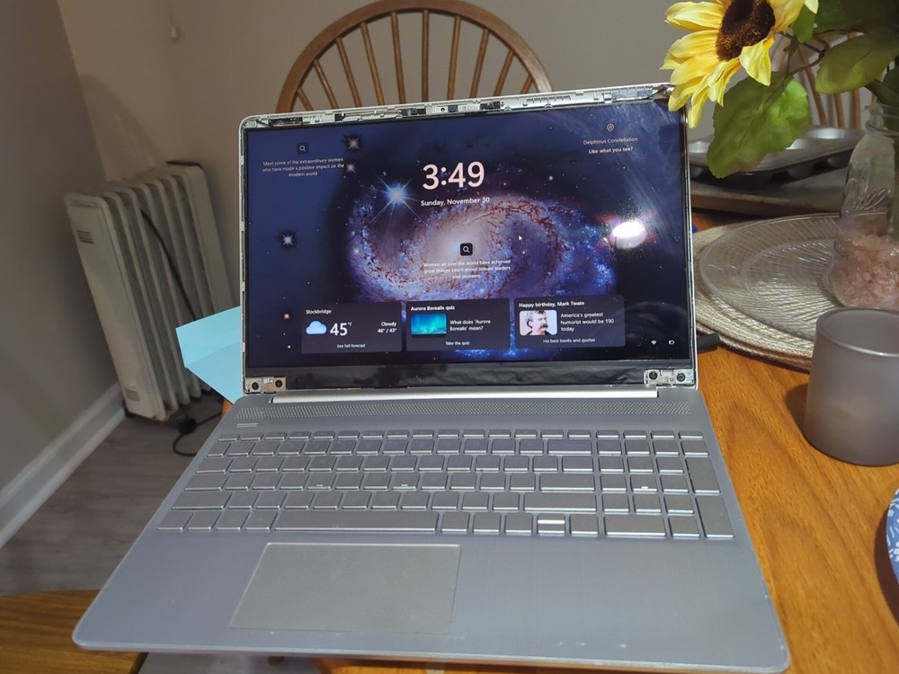 Used condition(see photos) Physical damage only- doesn't affect performance works great needs screen case charger included The HP Laptop 15.6-inch with Windows 11 Home is a sleek and powerful notebook designed for casual computing tasks. With an AMD Ryzen 5 5500U processor, 256GB SSD capacity, and integrated graphics, this laptop offers fast performance and smooth visuals. The 15.6-inch screen with a maximum resolution of 1920 x 1080 ensures a clear and crisp display, while the silver color adds a stylish touch. Equipped with Bluetooth connectivity, HDMI port, and a 1-year manufacturer warranty, this HP Pavilion 15 model is a reliable choice for everyday use.
