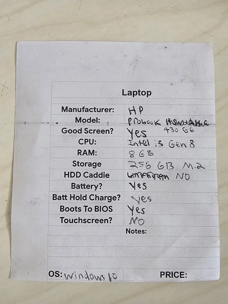 HP ProBook 430 G6 Laptop - i3 Gen 8 - 8GB RAM - 256GB M.2 - Windows 10 8GB RAM. 256GB M.2 Operating System: Windows 10. Laptop has been cleared and ready for use. See pictures. Laptop is sold as laptop only with no accessories or chargers included. SHIPPING: We will ship your item in 1-3 Business days. Most items are ship within one day but I work full time and cant always get all orders shipped. Your item will be packaged nicely to ensure safe arrival. We will always use the most cost effective shipping method. TERMS: Please pay for your item within 3 business days or we will be forced to open an unpaid item case after a week. No Returns accepted on items for Parts THANK YOU AND HAVE A GREAT DAY!!!!!