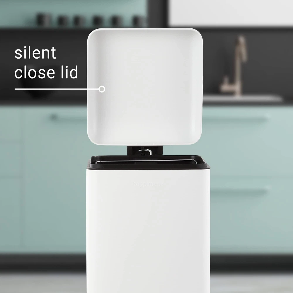 This semi-rectangular 8-gallon trash can hides plenty of capacity within its slim size, making it a great choice for home offices, craft rooms, laundry rooms and other small spaces. Featuring a profile hinge and retro silhouette -- its sleek design allows it to sit close to a wall or cabinet. Its design features don't end there -- its finished in powder-coated stainless steel, features a steel step-on mechanism that allows for smooth openings and closings (no pinched fingers!), and has a removable plastic liner that makes bag changes a cinch. STYLISH & PRACTICAL DESIGN: Trash Cans clean-lined designs blend beautifully into your existing decor; Dispose of trash hands-free with our convenient step pedal; built-in damper lowers the lid quietly, and closes it tightly to keep odors inside DURABLE AND EASY-CLEAN: We believe in form following function; Made from high-quality steel, our trash cans feature a durable, lightweight inner plastic bucket; Family-friendly, brushed stainless steel is smudge-resistant and fingerprint proof SATISFACTION GUARANTEED: Every design is created with uncompromising attention to detail, using only the highest quality components; Based in Soho, New York, designer Jonathan and his talented team create affordable high-end home decor Can hold 30 liters or 8 gallons of trash Powder-coated steel construction
