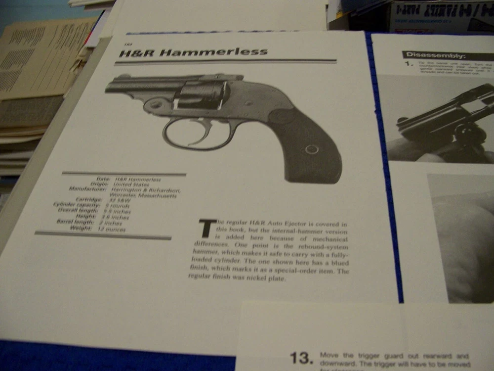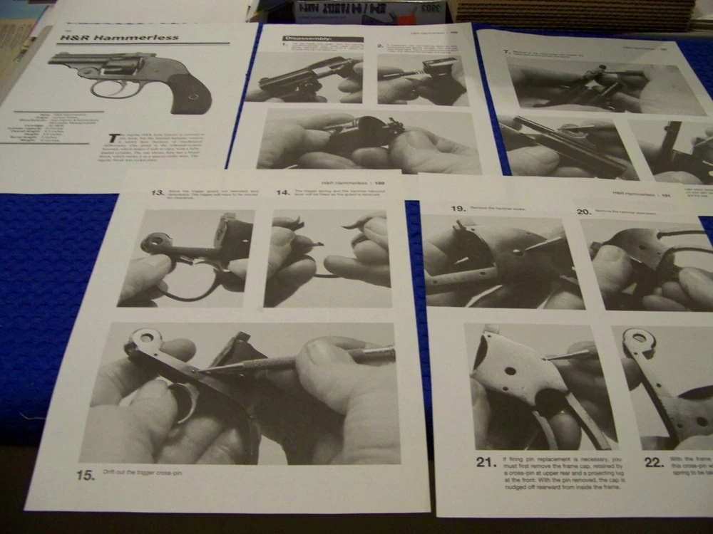 THESE ARE EXTEMELY RARE PROFILES OF ALL TYPES OF GUNS SUCH AS LISTED BELOW!.........DONT MISS YOU CHANCE TO AD THIS TO YOUR COLLECTION! THESE ORIGINAL PERIOD (1960'S/70'S/80'S/90'S ) PAPER ARTICLES WERE BOUGHT FROM A GUN COLLECTOR ESTATE SALE AND ARE SLEDOM SEEN!.......ALL IN AWESOME CONDITION FOR THEIR AGE! UP FOR SALE IS AN ORIGINAL PRINT 9-PAGE ARTICLE ON:.. H&R HAMMERLESS (.32 S&W) REVOLVER (9-PAGES) Page/s size: APROX: 8 1/4 " X 10 1/2" AUTHOR/ARTIST: N/A YEAR: 2011 ORIGINAL PRINT SCALE: N/A ARTICLE FEATURES: HISTORY/DETAILS/PHOTO/TAKEDOWN INSTRUCTIONS WITH PHOTOS/REASSEMBLY TIPS/DATA-SPECS CHART CONDITION: GREAT-LIGHT COLORING (NORMAL ). ** SOLD FOR 9-PAGES DRAWINGS/PROFILES ...ANY OTHER ARTICLE ON BACK OF DRAWINGS/ARTICLE ARE NOT REPRESENTED IN THIS AUCTION! *** (REMEMEBER THESE ARTICLES ARE EXTRMELY OLD AND RARE...SOME MAY HAVE SOME BORDER DISCOLORATION/SMALL EDGE CHIPS/PAGE DISCOLORATION)/BINDING CUTOUTS....SEE CONDITION AND NOTES LISTED ABOVE AS TO EACH ARTICLE! **THESE ARE AIRCRAFT ARTICLES THAT HAVE BEEN EXTRACTED FROM VINTAGE MAGAZINES/ECT... AND ARE INDIVIDUAL PAGES OF EACH SUBJECT AND SOLD AS COMPLETE ARTICLES ON EACH SAID AIRCRAFT AS LISTED ABOVE! NOT SOLD AS A COMPLETE MAGAZINE or BOOKLET!!! **all articles are shipped flat on cardboard flat and mail flat in manila envelope to INSURE condition! ** I DO OFFER COMBINED SHIPPING ON MULTIPLE ITEMS PURCHASED
