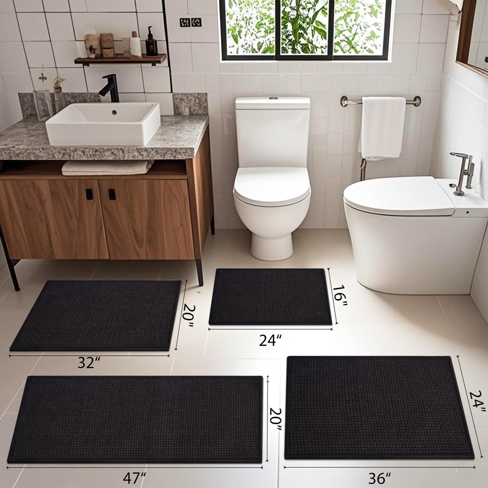 Tired from work? Sway away all your stress when you touch your feet onto our soft bathroom rugs. The rich, smooth texture gives your feet a relaxed feeling and makes you feel like you are in a spa as you step out of the bath tub or shower, wrap yourself in blissful luxury. Give your living room a contemporary look by placing our bath rugs, which gives a unique yet lush look. Keep it anywhere and it won’t disappoint. Indulge Yourself in Pure Luxury: Our bathroom rugs feature a low-pile woven design for a perfect blend of style and comfort. Step onto our soft bath rug after your shower and experience unmatched coziness. With this elegant woven bath rug, you can transform your space into a spa-like oasis Super Absorbent and Quick Dry: Our bath rug is super absorbent. When you step out of the bathtub or shower, it quickly soaks up the dripping water from your feet. And our fabric technique allows the rug to dry fast in the open air, bring you a dry and comfortable bathroom Upgraded Non-Slip Backing: Our bathroom mats feature natural rubber backing, increasing slip resistance of a floor surface. They tightly grip smooth surfaces without skidding, and hence prevent and reduce the risk of falls for kids and the elderly. Say goodbye to slippery PVC/TPR bathroom mat—step out safely with our secure, stable design Easy to Clean: Unlike high pile chenille bath mats that easily trap dirt, our bath mat design is easier to clean. Machine washable and more durable. Not easy to shed or deform, as its backing and surface come with unibody design. Please do not bleach or tumble dry Multi-Purpose Use: Available in many colors, these bath rugs can go with different kinds of decor style. Having lots of sizes to choose from, such as small bath rug, large bath rug,long bath rug and bathroom runner rug, you can easily find one to fit in front of the sinks, showers, or bathtubs. You can also use it in laundry room, bedroom, kitchen, or use as RV bath mat and more