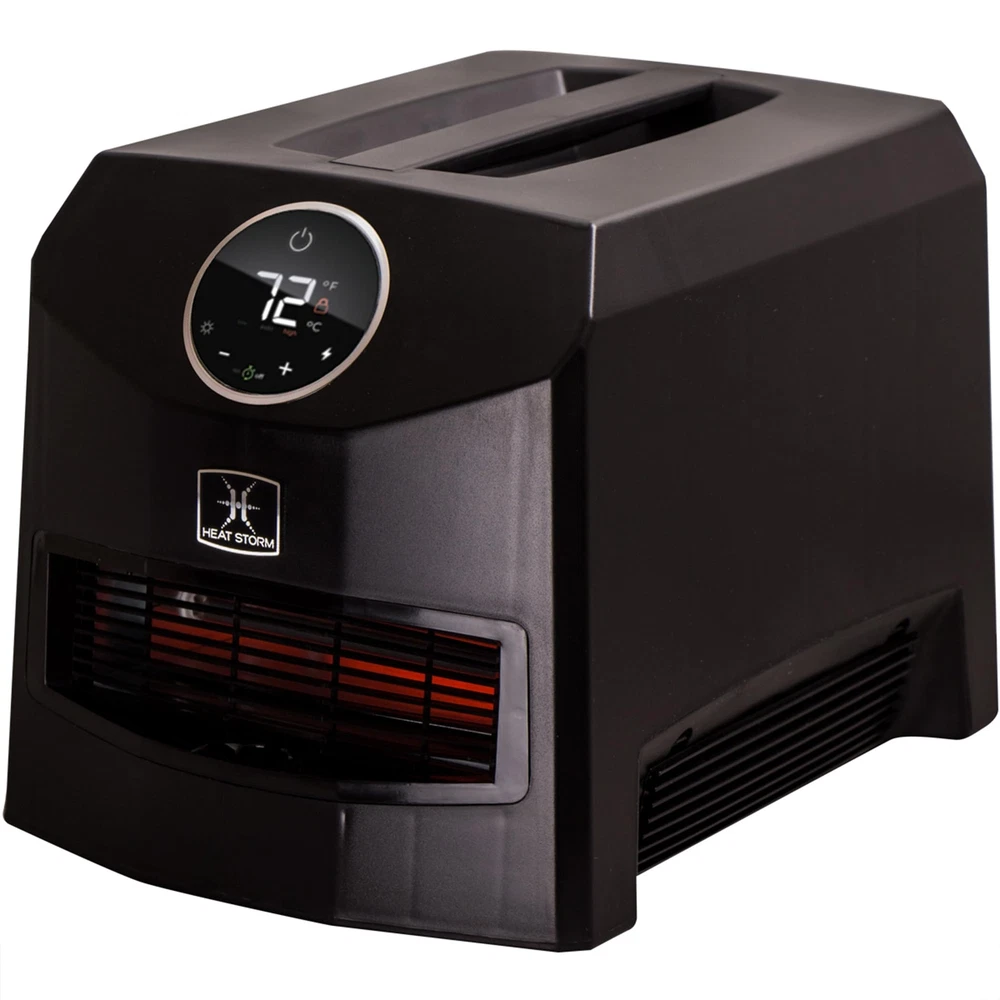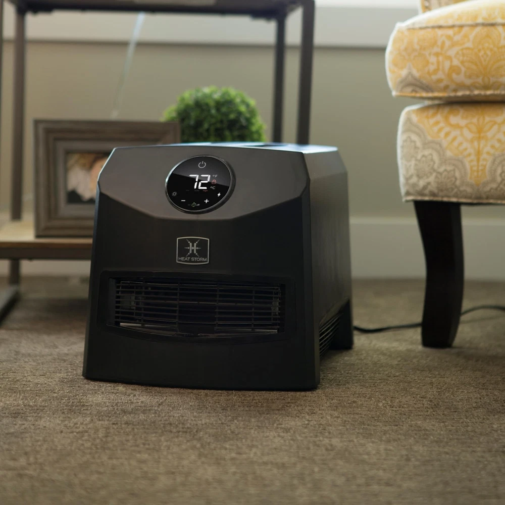 At only 10 lbs the Mojave Ultra Portable Infrared Quartz Heater was designed so you can take the heat to any room up or downstairs with breaking your back. The Mojave has a fragrance feature so that your room can smell as cozy as it feels.ETL and NOM certified. Made from ABS plastic, steel plate, quartz tube, copper cord. Includes 6ft cord. Item Specifications: Wattage:1500/750 ; AMPS: 12.5 / 6.25 ; Voltage: 120 . This portable 1500 watt infrared heater has the power to heat up to 1000 sq. ft (w/supplemental heating) with its 5200 BTU heat output. Coming in at only 11 lbs, this was designed so you could bring it anywhere you need! Our patented heat exchanger with HMS Technology combines with humidity in the room to provide soft, safe heat without reducing oxygen or humidity. Small convenient size makes this perfect for any room in the house. Energy Efficient mode, reduces wattage from 1500 to 750. Built in thermostat with LED display shows you what the ambient temperature is and helps regulate the temperature efficiently. Included remote control allows you to control the temperature with ease This heater comes with a 1 year manufacturer warranty