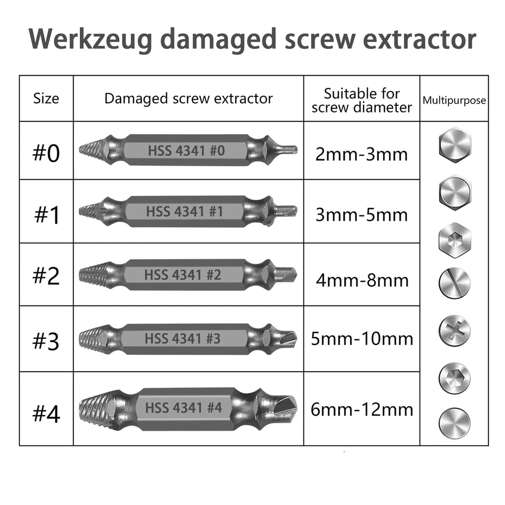 This set is a lifesaver for stripped screws! The HSS extractors grip tightly and remove damaged fasteners with ease. The spiral flutes work like magic, making tough jobs quick and frustration-free. Great quality, perfect for both pros and DIYers—highly recommend for any toolbox!