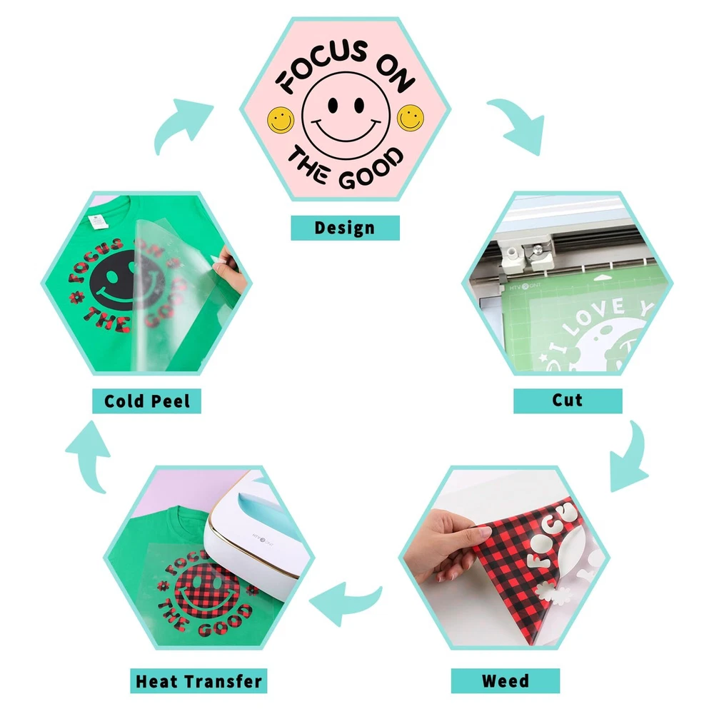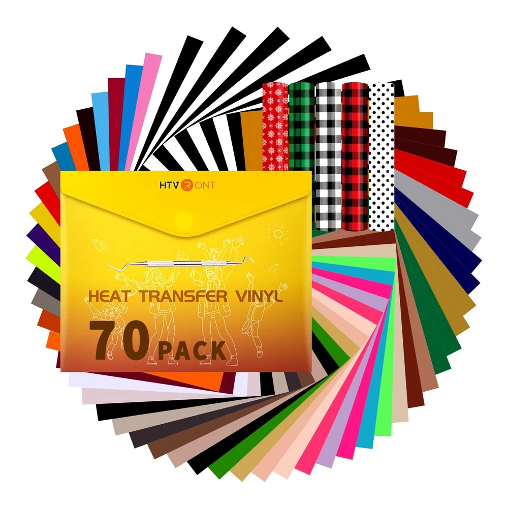 【HTV and Accessories Bundle】 A wealth of htv bundle can meet all your needs in the crafting time. Includes the following products: 63 pack regular htv vinyl sheets、5 pack special htv heat transfer vinyl、1 weeding hook and teflon sheet 【Easy to Cut/Weed/Transfer】The htv vinyl bundle feature impressively pressure and temperature-sensitive make the weeding process smoothly. This htv is temperature sensitive and easily transferred to any desired fabric surface. Note: Our heat transfer vinyl is cold stripped for use 【Say Goodbye to Scattered Materials】Packed in a durable storage bag. Keep the built-in accessories and heat transfer vinyl bundle from damage during transportation, and it can also be a good helper for your storage after use. Avoid losing and wasting of htv iron on vinyl 【Wonderful Gift Idea】This iron on vinyl for t shirts is a beautiful gifts for family and friends, which can make crafting journey more enjoyable. It can also be a good anniversary, Christmas, Thanksgiving, and other holiday and birthday gifts 【Application and after-sales】 The htvront heat transfer vinyl is suitable for cricut, silhouette cameo, brother, etc. If you have any questions about the iron on vinyl for t shirts or need help in the process of use, please feel free to contact us. Customer satisfaction is our greatest pursuit, and we will provide you with the most considerate service in time