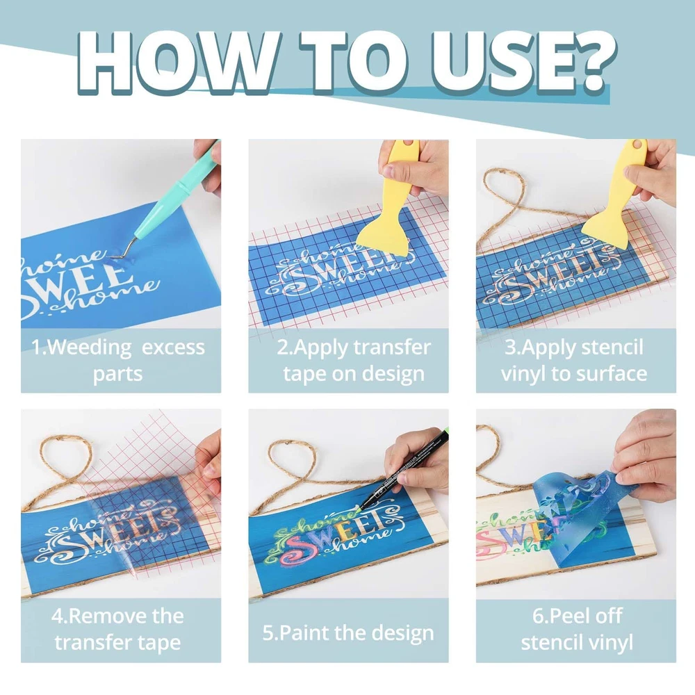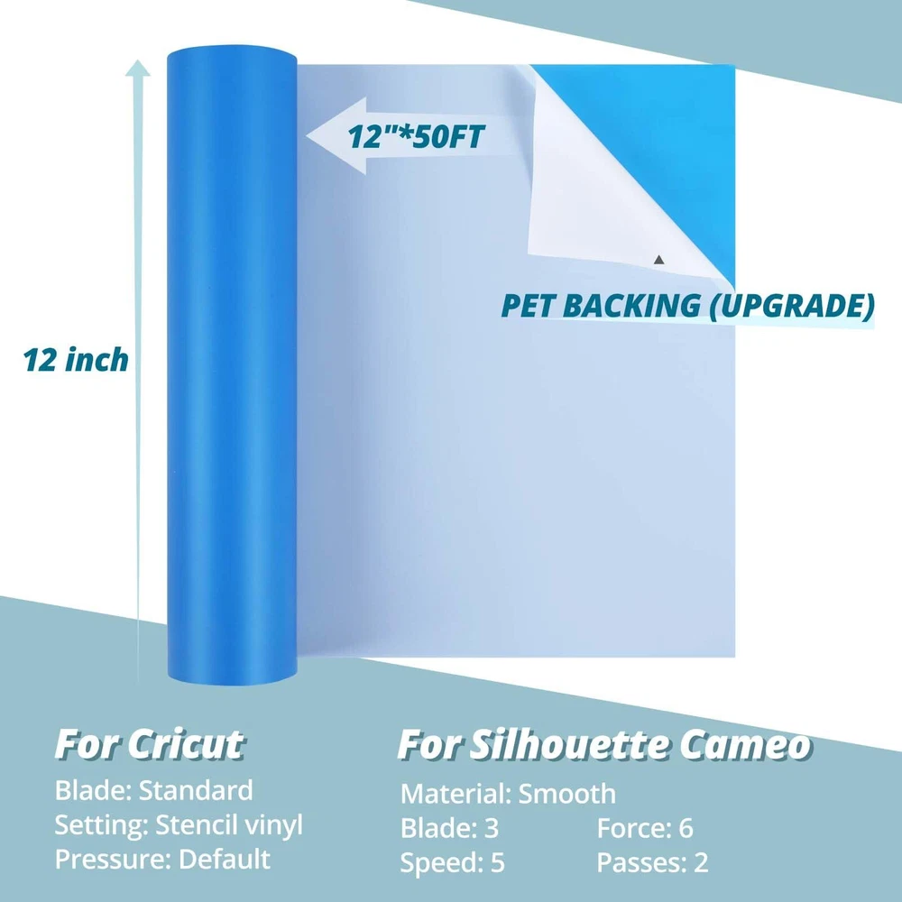 Easy to cut & weed: The matte and smooth stencil vinyl lends itself effortlessly to precision cutting, allowing you to easily navigate intricate designs. The characteristics of stencil vinyl for cricut cutting applications are top-notch, ensuring a seamless and enjoyable experience as you bring your creations to life Superior adhesion and ideal for wood: Say goodbye to stencil adhesive that peels or bubbles! Thanks to its super strong adhesive backing our adhesive vinyl has excellent stickiness and sticks securely to any smooth surface including wood, walls, glass.with outstanding durability, this stencil material maintains stencil film for cricut integrity over time and resists tearing effortlessly Premium quality & no bleed: In contrast to other stencil vinyls prone to bleed and bubbles, our stencil vinyl for cricut machine excels in adherence and precision. Vinyl for cricut machine securely adheres to your project and ensures flawless results with no issues of paint bleeding through Upgraded pet backing for superior adhesion: Our stencil vinyl for cricut features an enhanced pet backing to protect your designs and cutting mat. The sturdy backing ensures that your vinyl stencil stays securely in place during the cutting process, preventing any separation for the stencil vinyl. Bid farewell to cheap paper backings that ruin your projects - opt for our premium quality stencil material for cricut for a seamless crafting experience Exceptional customer service: Here at htvront, we are dedicated to providing you with top-notch customer service to match the quality and versatility of our stencil film. Our stencil vinyl for cricut starter pack includes a generous 12” X 30 ft stencil vinyl roll. If you have any questions or concerns regarding our product, please do not hesitate to contact us. Our devoted customer service team is ready to assist you and ensure that you are completely satisfied with our blue stencil vinyl
