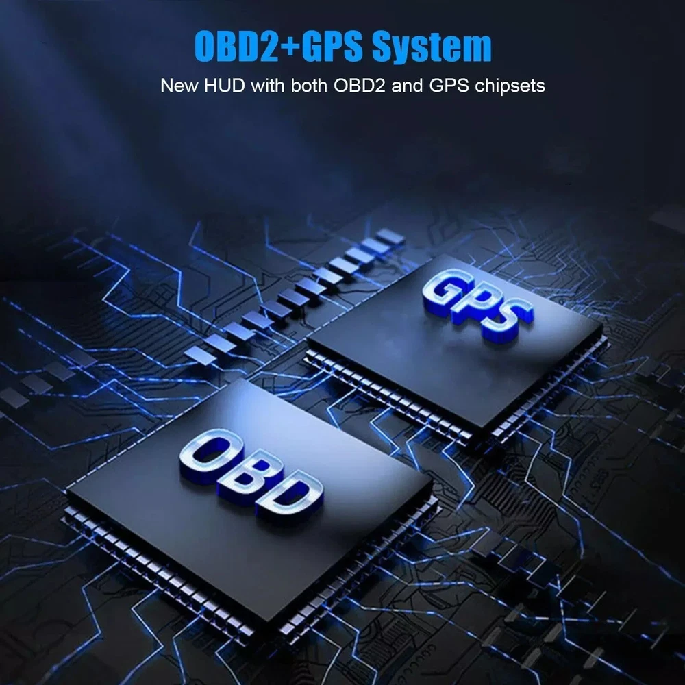 HUD OBD2 GPS Car Head Up Display with Digital Speedometer RPM Alarm Water Oil Temp Monitoring
