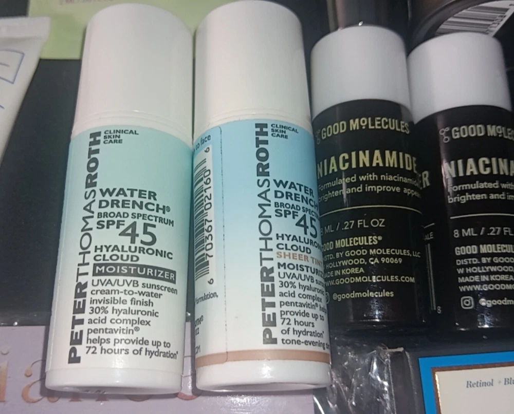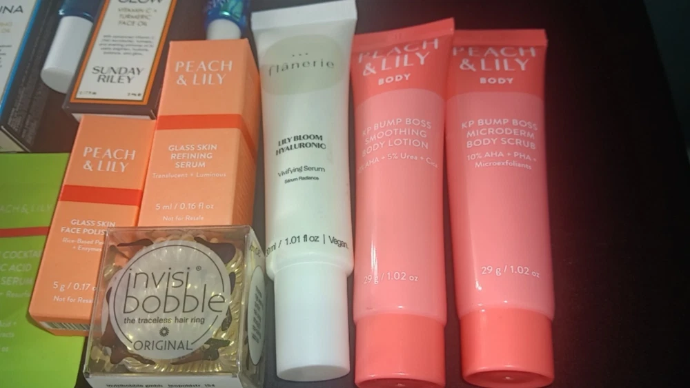 Large 40+ Piece Ulta Beauty Mixed Skincare Lot. Peach & Lily 6 piece travel size set Includes body scrub & body lotion 1.02oz each Glass skin facial polisher &refining serum .17oz each Retinoic eye cream .13 fl oz Repair serum .10 fl oz Flanerie vivifying serum 1 fl oz Exuviance travel set 4 piece set Includes Deep clean cleanser Moisturizer Detox mud mask Clarifying renewal serum Vitamins & sea beauty FULL SIZE Lotion 5oz & hydrating gel moisturizer 6oz Alo glow face mist .57 fl oz Estaté Matte Mood lipstick 3.5g La Roche- posay 4 piece travel set Face moisturizer w/sunscreen Facial gentle Cleanser Gentle cleanser oil MelaB3 Serum Belif 2 piece travel set Aqua bomb eye gel The true cream - aqua bomb Verso clarifying gel w/retinol 8 Invisibobble 3 piece hair rings Sunday riley 4 piece travel set Luna sleeping night oil CEO Glow vitamin C and turmeric face oil Retinoid+ niacinamide eye serum High dose retinoid serum Peterthomasroth water drench 2 piece set with and without sheer tint spf 45 Korres 2 piece set Probiotic gel-cream Poreless skin cream Good molecules 3 piece set 2 brightening toners 1 lightweight daily moisturizer sample Perricone MD 2 piece set Cold plasma + Sub-D Neck neck treatment Cold plasma + Sub-D Moisturizer Philosophy 3 piece set 2 Reactivating serums Eye revival serum Size small 2 piece polkadot jammie set
