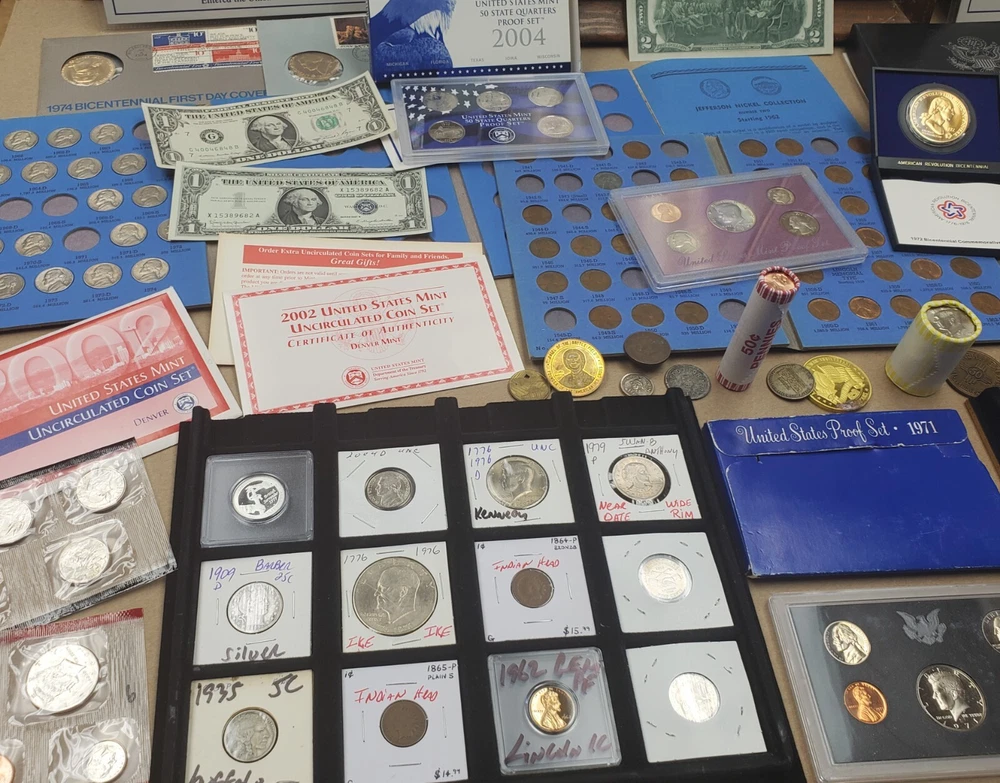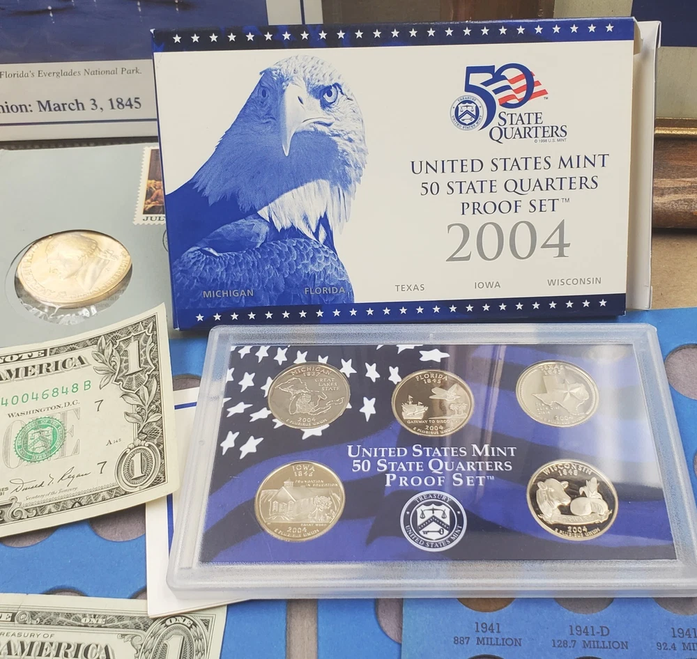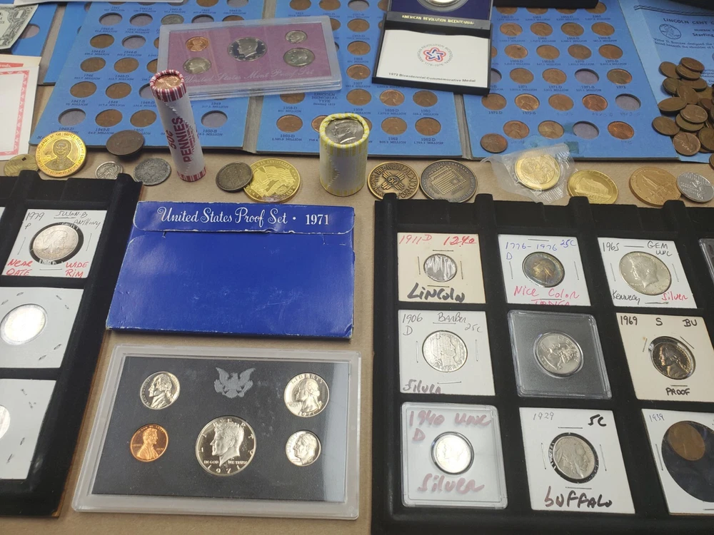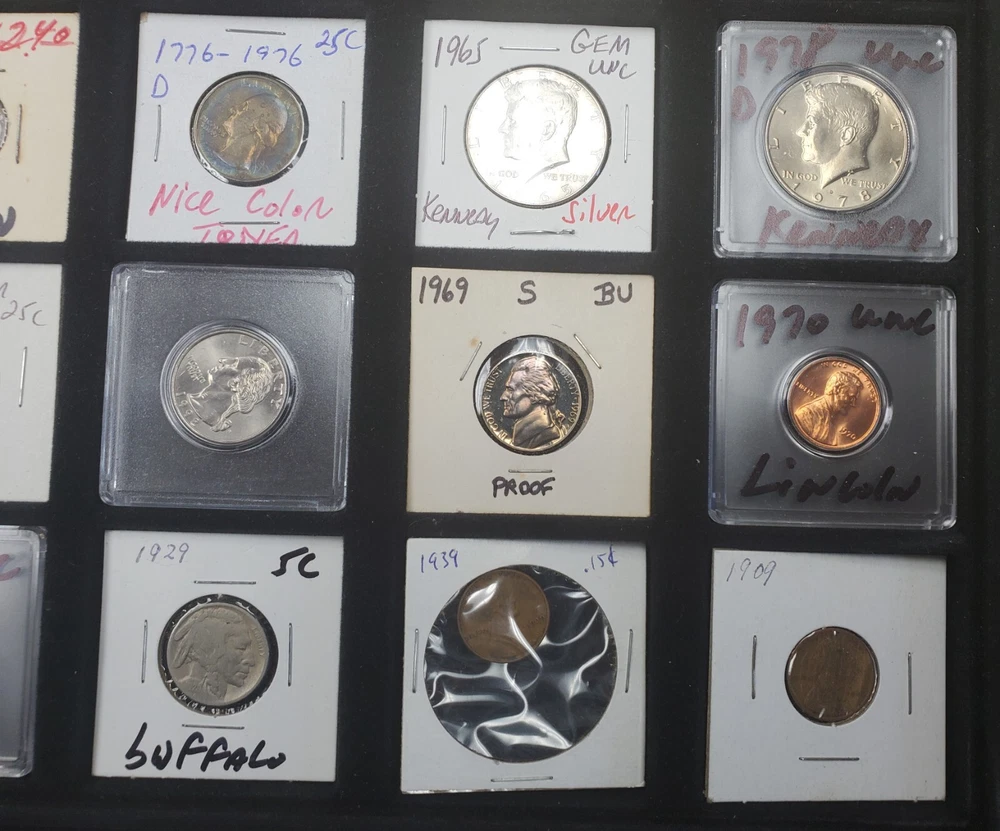 HUGE Estate Sale Coin Lot Collection - Great way to add and Nice Variety of USA, Old Rare Coins, Old Paper Money, 1957-B $1 Silver Certificate Bank Note, Lot's f Silver Coins, Terror of The Axis Coin Collection in Picture Frame, US. Mint Proof Sets, Commemorative, Medals, Lincoln BU Cents Roll, Lincoln Wheat Cent Roll, Kennedy Half Dollar Roll, Buffalo Nickel, Indian Head Cents, Silver Barber Quarters, Partial Lincoln Cent Collection in Album, Kennedy Silver Half Dollar Coins, 1994 Kennedy Silver Premier Half Dollar Set, Susan B. Anthony Dollar, & Much More to any Collection. Please Note: The Two Black 12-Coin Flip Tray's Are Not Included, it's to display the coins in the lot only. Very Clean Lot from a Smoke Free Environment. !! HAPPY BIDDING !! (SKU # 70 2-B) *** INTERNATIONAL SHIPPING QUOTED*** Thank you for viewing... Please email any questions you may have.... Take a moment and check out our other unique auctions !!! ***** Email us about signing up for our mailing list******* Exciting new items every day Philately - The Quiet Excitement Shipping We try to Ship Within 5 Business Days of Cleared Payment Will calculate international shipping PLEASE READ International Buyer's Shipping Instructions International shipping "" First Class Registered ENVELOPE " NO EXCEPTIONS ! ** Insurance, Registered mail or Confirmation/Signature Guarantee is included in the price of shipping for the USA only ** Our goal is to please our customers, provide quality and unique items, have successful transactions and earn positive feedback with a 5 star rating. We strive for accurate descriptions, quick turnaround, detailed communication, and reasonable shipping charges on every lot. Your feedback is important to us. If you feel anything about the transaction was less than 5 star, please give us the opportunity to rectify the situation Thank you The Staff at Henry Gitner Philatelists, Inc.