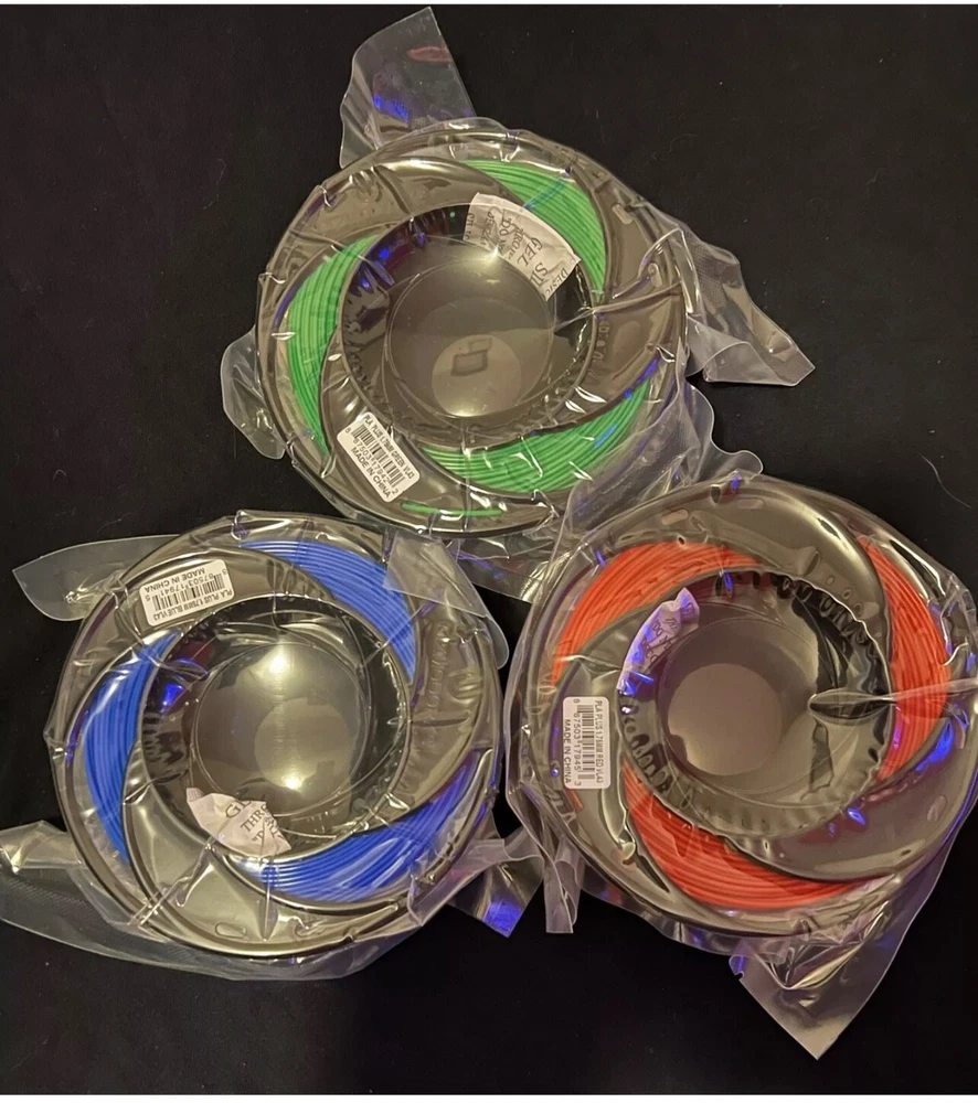 Absolutely everything you going need to start your 3D printing business. I had this similar set up when I got started made me tons of money. Months worth of filament. Huge bundle all the filament you would need to start a small 3D printing business. Come with 12 spools of 3D filament, extra nozzles, . Massive bundle deal! (7) + 1 SUNLU: Comes with 4 white & 3 black 1.75mm 3D filament spools and am also throwing in an additional black SUNLU spoil. 8total Details- ①【 SUNLU 3D Filament 】 PLA 3D filament is the easiest, the most widely used filament, no clogging, no bubble. SUNLU filament has good layer adhesion and is easy to use. ②【 1.75mm filament diameter 】 Dimensional accuracy +/- 0.02 mm. SUNLU filament has a wide compatibility due to the small diameter error and is suitable for almost all 1.75mm FDM 3D printers. ③【 SUNLU Spool Diameter 】 Spool diameter: 8.00", spool width: 2.50", spool hub hole diameter: 2.20". The size of SUNLU filament spool is suitable for hanging on many FDM 3D printers. ④ 【 Professional Team 】 SUNLU is a high-tech company specialized in R&D, production and sales of 3D printing filament, 3D printer, 3D pen and 3D resin. SUNLU has a professional team. Low shrinkage rate Excellent impact resistance and strength Environmental protection Parameters for different types of consumables : Type:PLA Recommended Extrusion/Nozzle Temp: 200°C - 230°C (392°F - 446°F) Heated Bed Temp: 50°C - 60°C(122°F - 140°F) Filaments Diameter and Accuracy: 1.75 mm +/ 0.02 mm Cooling Fan: Turned OFF or 50% Printing Speed: 40~50(mm/s) Raft Separation Distance: 0.14(mm) Retraction Distance: 1~3 mm (Note : Based on 0.4 mm nozzle and simplify 3D V 4.0.; Printing conditions may vary with different (3) GIZMO DORK The colors are red, blue and green.