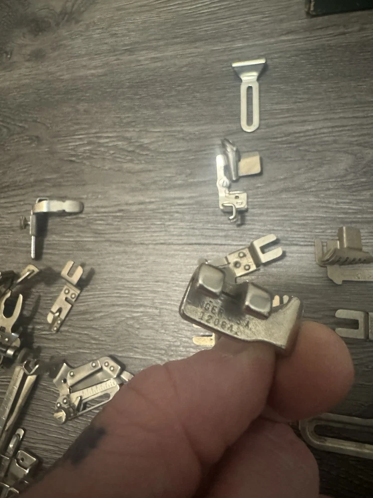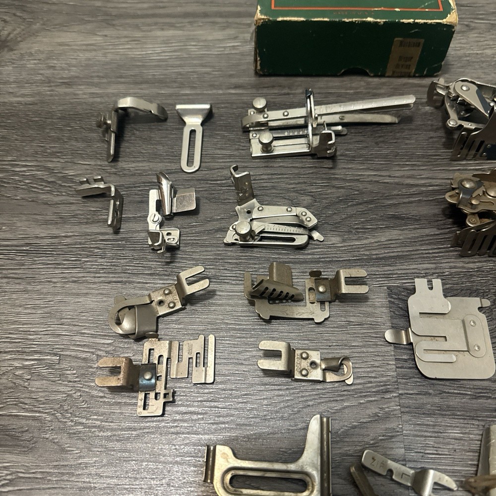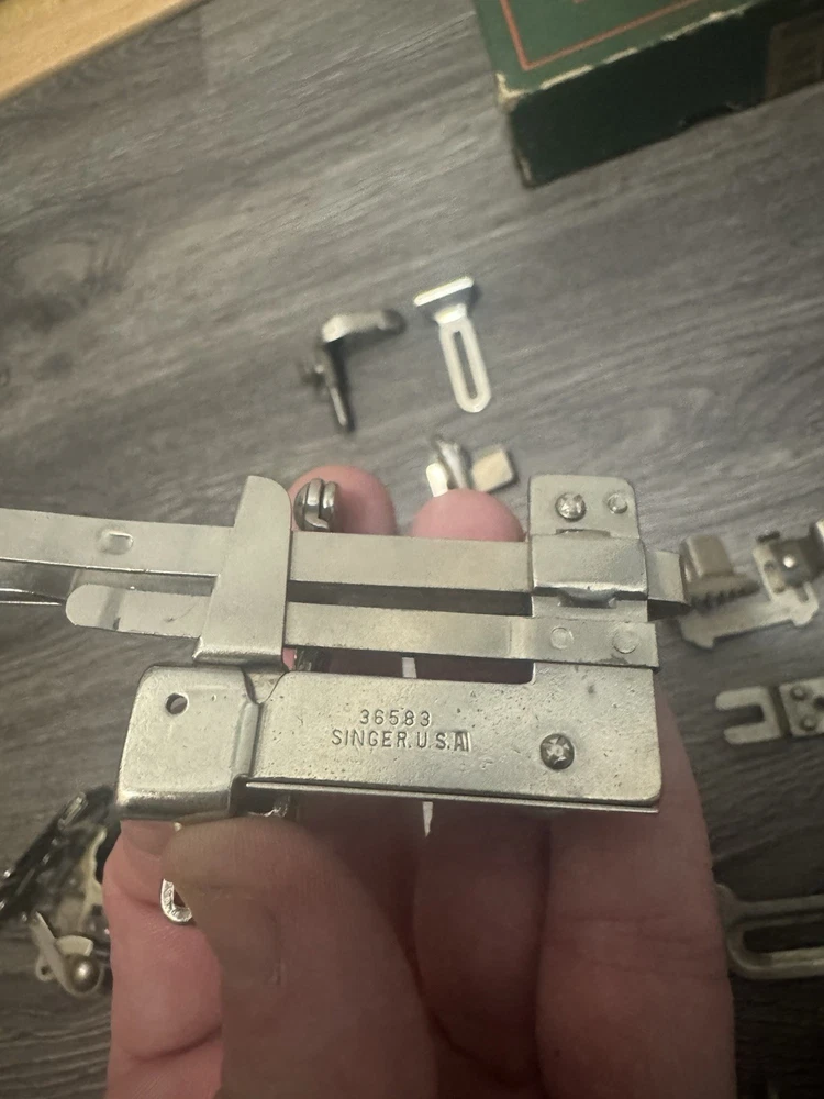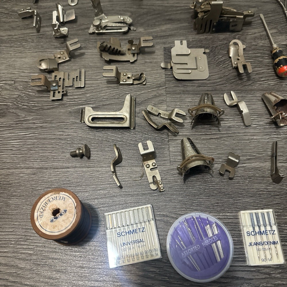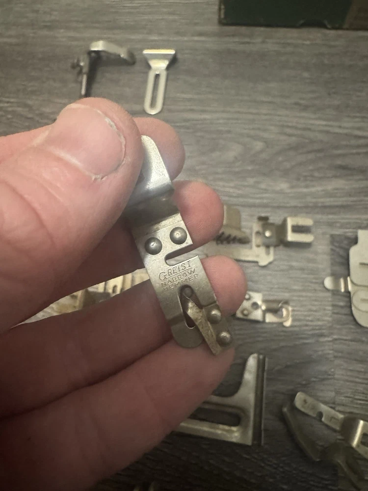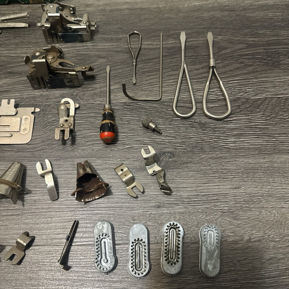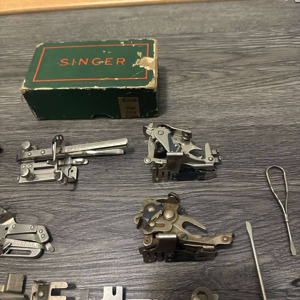 HUGE LOT OF VINTAGE SINGER/Greist Etc SEWING MACHINE ATTACHMENTS +PARTS Everything shown in picture. Singer Greist Etc One Original Singer Box #sewing