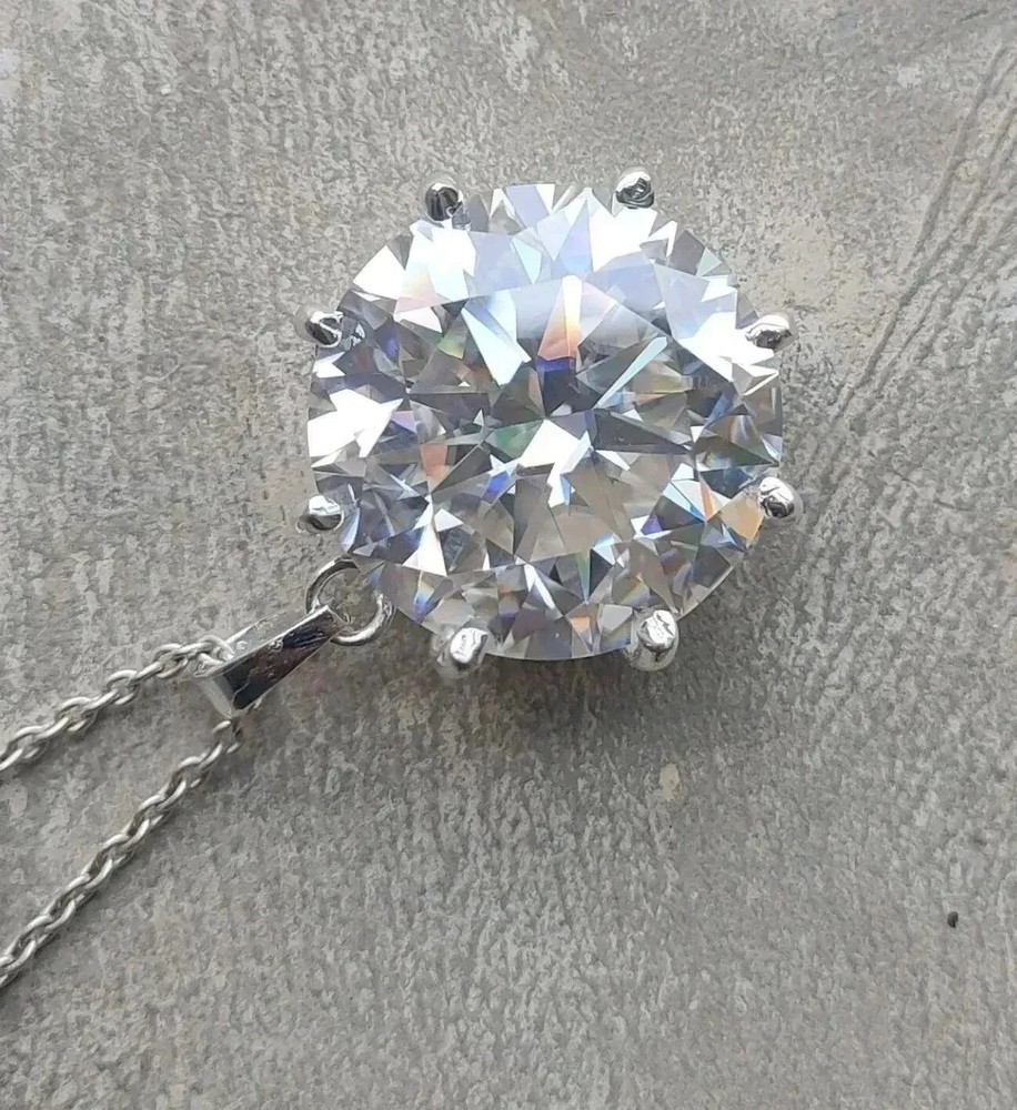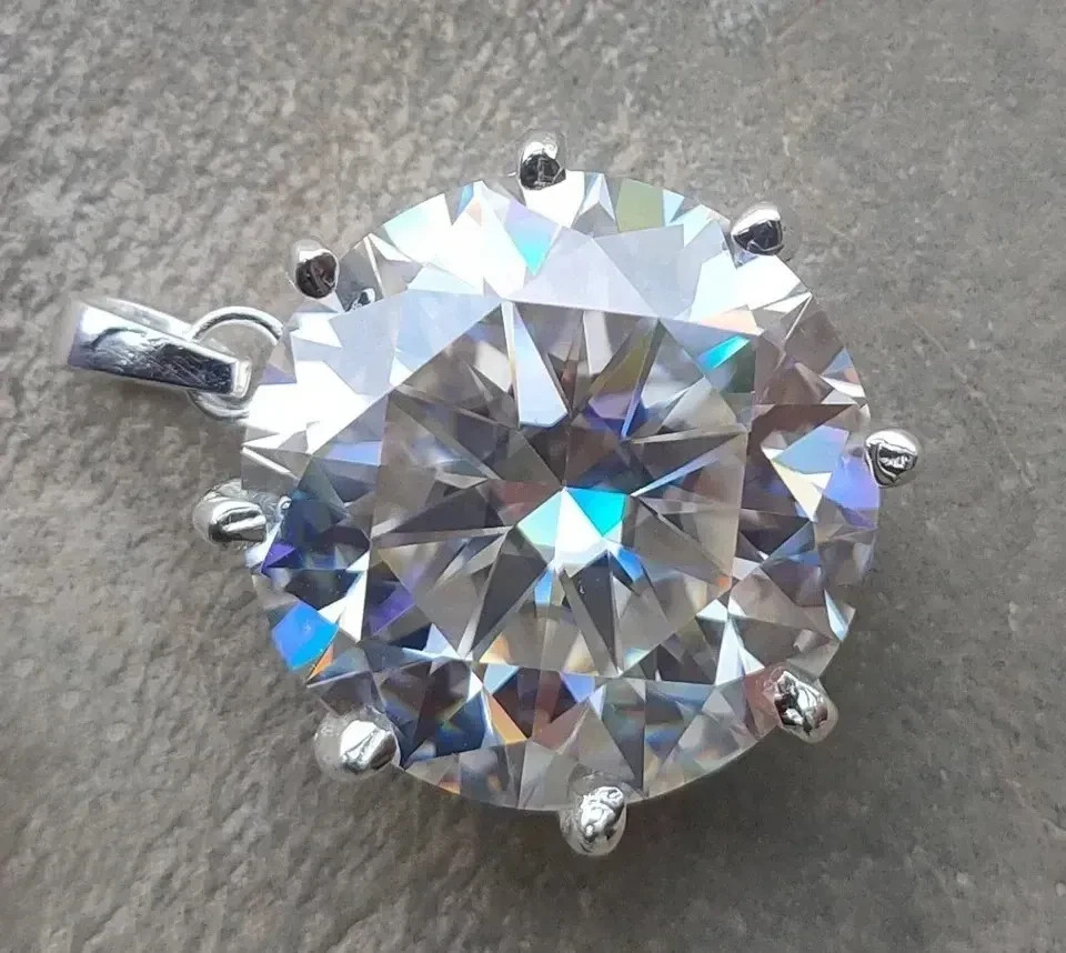 Natural Gemstone • Luxury Grade White diamond • Round Cut Metal Solid 925 Sterling Silver Specifications Gemstone White Total Carat 56 Carat Shape / Cut Round Color White Metal 925 Sterling Silver Treatment Heated & Pressure Treated Pendant Dimensions 25 MM Diamond Geological Properties These are genuine Colored Diamonds found naturally mines mainly from Brazil. They are more porous than White Diamonds and are found in the upper layers of the ground relative to the White Diamonds that are mined deep. Some scientists are of the opinion that their origin maybe a Meteor that impacted earth Billions of years ago. What is their nature? Colored Diamonds are not found in the state as they are sold. They are made from earth mined rough rock found in mines of Brazil. The Rock color varies from Light Blue, Dark Blue, Champagne, Pink, Green etc. What is the treatment process? To bring out its true color it needs to be treated. The process is a natural one employing gentle heating a high-pressure environment (HPHT) which gradually brings out the true color of the Diamond. Are any artificial colors or chemicals added? There are no artificial colors or chemicals included in the process. They are not irradiated. Does it alter the composition? The process may or may not alter the composition. It remains a true Diamond nevertheless. Once our diamonds are heat-treated, it may move the molecules. This causes them to not always test properly with a hand tester. If a hand tester is used, sometimes they test as diamonds and sometimes they test as Moissanite. But they are genuine earth mined diamonds, not Moissanite or CZ. If you use a jeweler's loop you can see this by their molecular composition. How does it differ from a Moissanite? A Moissanite is man-made whereas our Diamonds are earth-mined. A Moissanite will lose its shine and wither away in a short period whereas a Diamond will remain as they are forever. What if I have doubts about their authenticity? You can always message us in case you still want any more details or clarifications. Once purchased we will understand that you have read and understood the details about these Diamonds and thus, we will be unable to accept returns for this reason. What Guarantee do you offer? We offer full 100% Money Back Guaranteed in case of any manufacturing defect. Please also refer to the Refund Policy as mentioned our item listing. Mineral Information - Diamond Chemical Composition - Carbon (C) Color - D to J (Colorless to Near-Colorless) Hardness - 10 (Mohs Scale) Specific Gravity - 3.52 Refractive Index - 2.417 Shipping & Handling Handling Time - Orders processed within 07 business days after payment clears USA Shipping - Delivery in 07–15 business days International Shipping - Estimated 11–15 business days Payments We accept payments exclusively through Payoneer . Orders are processed only after full payment is deposited and cleared. Please ensure your Payoneer account is active and funded before purchasing. Return Policy Return Period - 30 days from delivery Condition - Must be unused, undamaged & in original packaging Refund Time - Issued within 03-07 business days after inspection Return Shipping - Buyer pays return shipping Duties & Taxes Import duties, VAT, customs fees, or any destination country taxes are the buyer’s responsibility. Please check your country’s rules before purchase. Why Buy From Earthica Natural gemstones • Transparent grading • Custom jewelry options 5★ Rated Seller Insured Shipping Expert Gemologist Support Message Us for Custom Jewelry © 2025 Earthica . All Rights Reserved. All gemstone images, product descriptions, and layout design are intellectual property of Earthica. Unauthorized copying or redistribution is strictly prohibited under international copyright law.