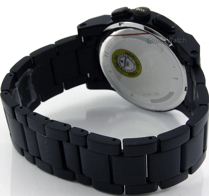 WE DO NOT SELL REPLICAS! 100% BRAND NEW AND AUTHENTIC! *SELLER RETIRING*SUPER CLEARANCE* MEN HUGO BOSS 1513276 PRECISION JAPAN QUARTZ MOVEMENT 60 MINUTE STOPWATCH SUB-DIAL AT 9 O'CLOCK POSITION 1/10th OF A SECOND STOPWATCH SUB-DIAL AT 12 O'CLOCK POSITION CHRONO SECOND HAND SUB-DIAL AT 6 O'CLOCK POSITION BLACK DIAL WITH YELLOW GOLD ACCENTS BLACK ION COATED SOLID STAINLESS STEEL IN MATTE FINISH MINERAL CRYSTAL BUTTERFLY SAFETY CLASP WITH EDGED HUGO BOSS SIGNATURE 5ATM / 50M WATER RESISTANT CASE DIAMETER IS 46mm EXCLUDING CROWN CASE IS 12mm HIGH LUG SIZE IS 24mm WEIGHS 7.1oz (202g) MAXIMUM WRIST SIZE 8-1/4" COMES IN HUGO BOSS PRESENTATION GIFT BOX