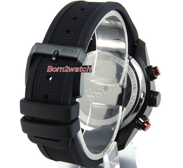 WE DO NOT SELL REPLICAS! 100% BRAND NEW AND AUTHENTIC! *SELLER RETIRING*SUPER CLEARANCE* MEN HUGO BOSS 1512661 PRECISION JAPAN QUARTZ MOVEMENT 60 MINUTE STOPWATCH SUB-DIAL SMALLER SECOND HAND SUB-DIAL AM-PM 24 HOUR SUB-DIAL ALARM SUB-DIAL BLACK PATTERNED DIAL LUMINESCENT HANDS AND HOUR MARKERS DATE CALENDAR BLACK ION COATED STEEL IN POLISHED/BRUSHED FINISH MINERAL CRYSTAL SCREW LOCKING CROWN POLYURETHANE BLACK RUBBER STRAP 100M WATER RESISTANT CASE DIAMETER IS 46mm EXCLUDING CROWN CASE IS 12mm HIGH LUG SIZE IS 24mm (WHERE STRAP CONNECTS TO CASE) WEIGHS 3.7oz (106g) MAXIMUM WRIST SIZE 8-1/2" COMES IN HUGO BOSS PRESENTATION GIFT BOX