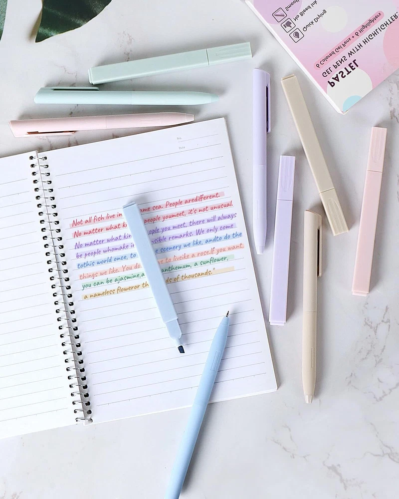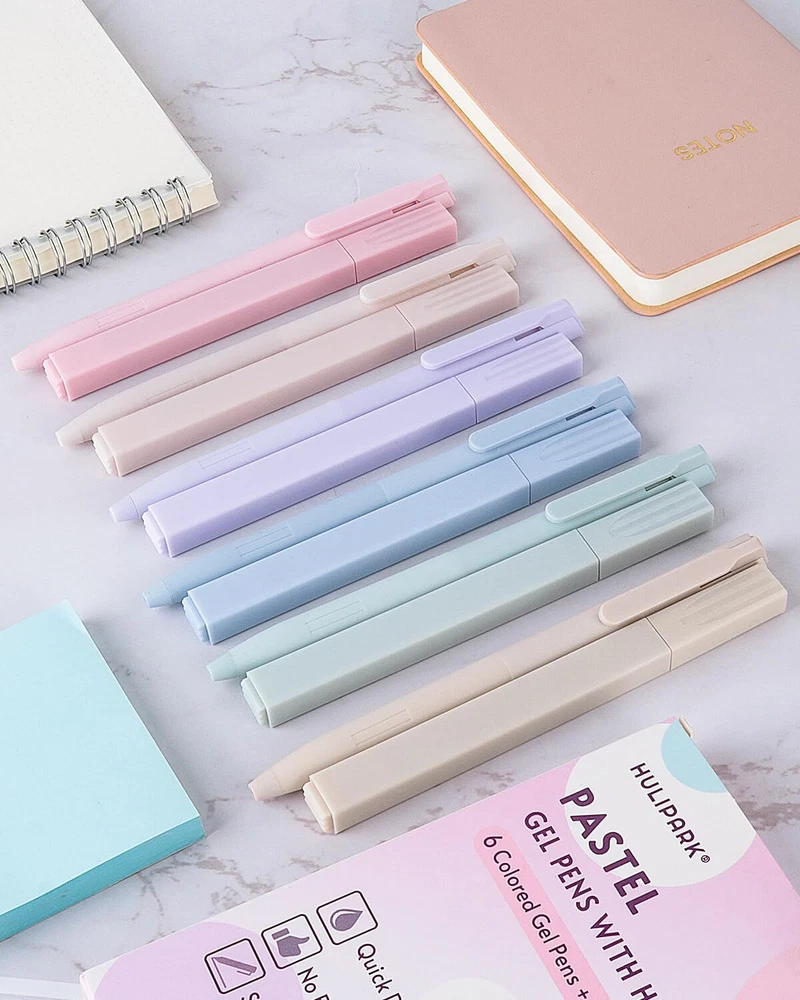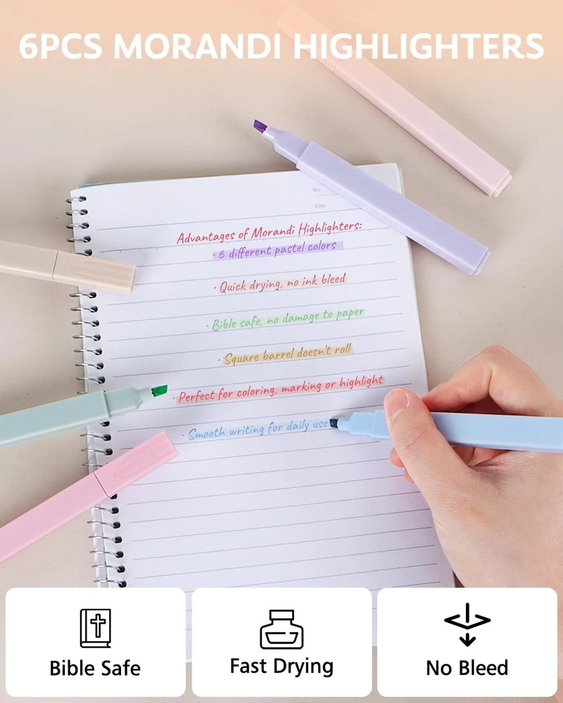 HULIPARK Bible Highlighters and Pens No Bleed, Cute Aesthetic Highlighters Pastel Gel Pens Colored Ink Quick Dry for Bible Journaling, Morandi Pens and Highlighters Set School Supplies, 12 Pack PACKAGE INCLUDES: The bible pen set includes 6 pastel highlighters and 6 colored ink pens, the morandi colors provide a relaxing writing experience and meet your daily writing needs MULTIPLE COLORS GEL PENS: Aesthetic gel pens offer 6 different colored inks, quick-drying and non-smearing, 0.5mm fine point pens are great for daily use, taking notes, drawing or sketching, etc BIBLE HIGHLIGHTER NO BLEED: The cute highlighters features a chisel-tip nib that dries quickly without bleeding ink or damaging paper, suitable for marking, coloring, bible or journaling, etc SMOOTH WRITING: Cute gel pens and highlighters set write smoothly and comfortable, providing you with an uninterrupted writing experience BIBLE JOURNALING SUPPLIES: Aesthetic writing tools make your life more interesting, soft colors enhance your creativity and imagination, aesthetic pens and highlighters set is a good choice for girls, students or family