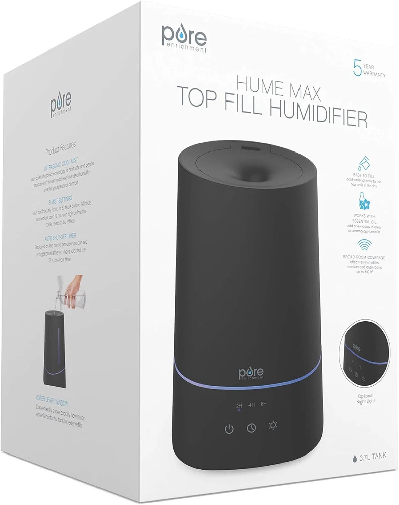 Product Description UNIQUE TOP FILL DESIGN: Easily pour water directly into the top of the humidifier for convenient mess-free refills with a built-in water window ensuring you’ll never overfill. BETTER AIR & FEWER REFILLS: Hume Max helps alleviate the effects of dry air longer with our industry-leading tank size for top filling humidifiers, a capacity of almost 1 gallon. 3 MIST SETTINGS: Maximize your comfort and adjust the moisture in any room with customizable mist outputs — Low setting: mists up to 30 hours; medium setting: mists up to 18 hours; high setting: mists up to 12 hours. AMPLE ROOM COVERAGE: Complement any bedroom, living room, nursery, and office up to 300 sq ft with ease. WHAT YOU GET: Top fill humidifier, AC power adapter, user manual, and ’s guaranteed 5-Year Warranty. Our customer support team provides daily quality service and peace of mind to millions worldwide all from a brand you can trust. About Us We are a reputable seller with many years of experience selling on eBay. Our goal is to provide high-quality products and excellent customer service. Shipping Items will be shipped within 1-3 business days when we received payment. (Orders are not processed on weekends & holidays) Tracking information will be sent once item is shipped. Delivery time depends on destination and other factors Item is shipped to ebay address. Leaving correct address can minimize delay. For international shipping and shipping to Guam, Hawaii and Alaska, Please contact us before placing the order. International buyers please note: Import duties, taxes and charges are not included in the item price or shipping charges. These charges are buyer’s responsibility. We will try our best to reduce the risk of the custom duties. Local pick-up is unavailable at the moment. Contact Us We reply any email messages within 1 business / working days(off-duty at weekend). If you do not get a response from us, then please check your junk or spam mailbox. Our Business hours: Mon-Fri 9:00-18:00, UTC/GMT +8 hours. Please contact us either by clicking "contact seller" in the "purchase history" section or simply click "ask a question" at the bottom of this page. If you are unsatisfied with our item or service, please contact us before leaving any feedback. We are committed to resolve all issues in a friendly and satisfactory manner.