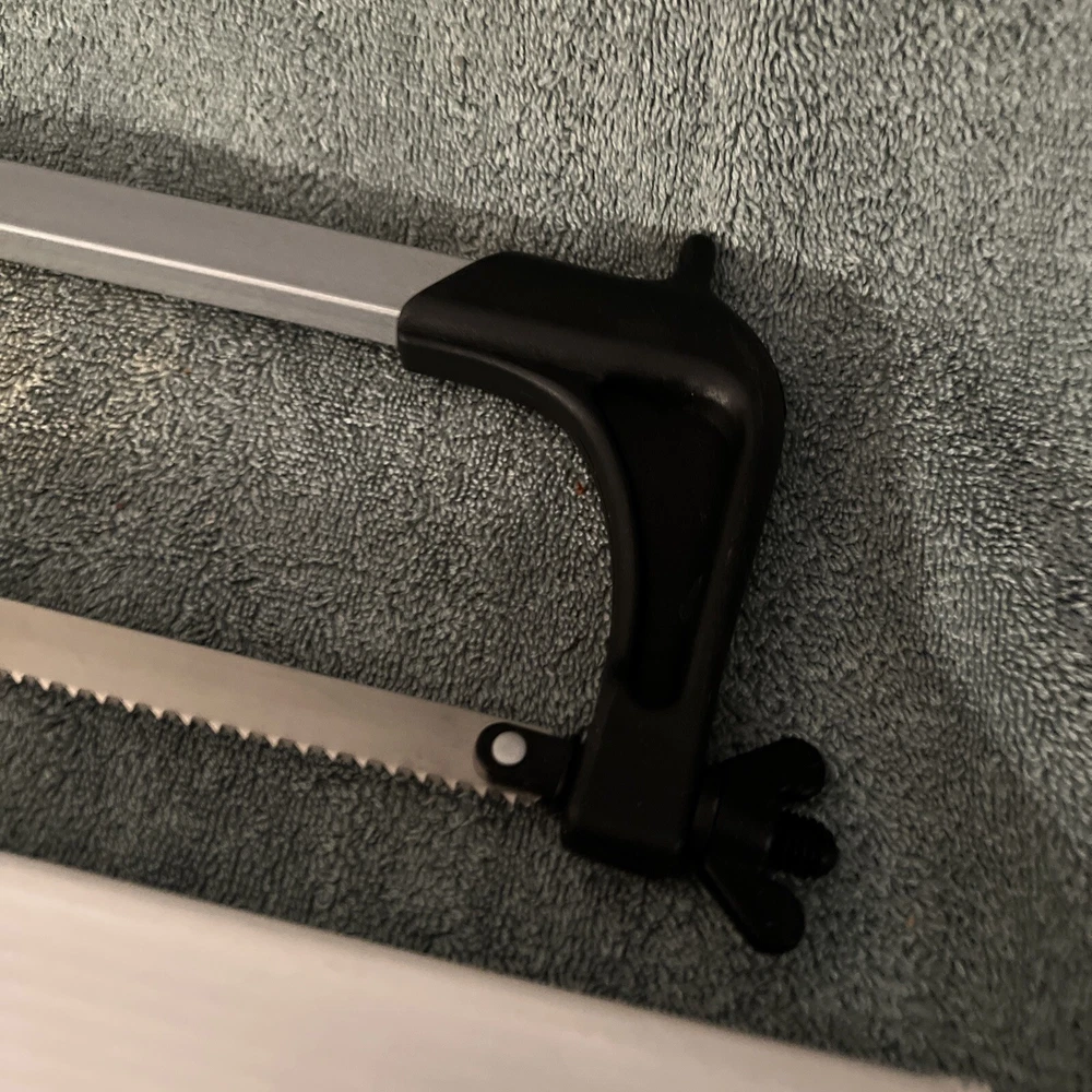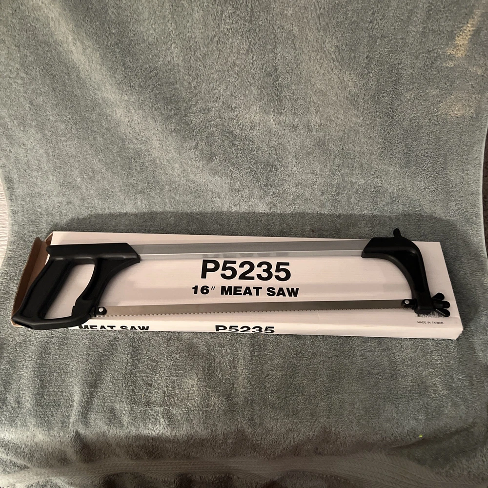 This 16" meat saw is a must-have for any hunting or survival prepper. Made in Taiwan and compliant with California Prop 65, this saw is perfect for processing meat and bones with ease. Its durable construction ensures long-lasting use, and its unique design makes it a versatile addition to any kitchen. Whether you're a professional chef or a home cook, this meat saw is sure to impress.