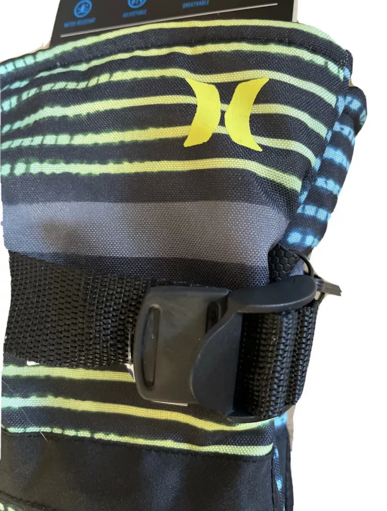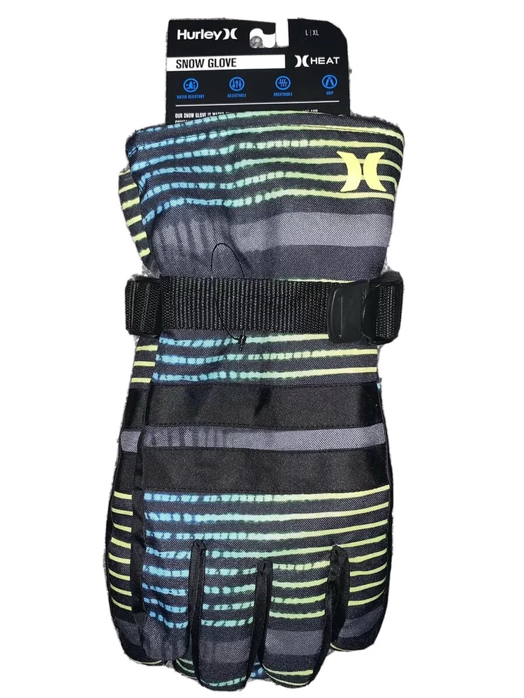HURLEY Heat Block Water Resistant Black Stripes Snow Gloves Size L/XL Snowboard