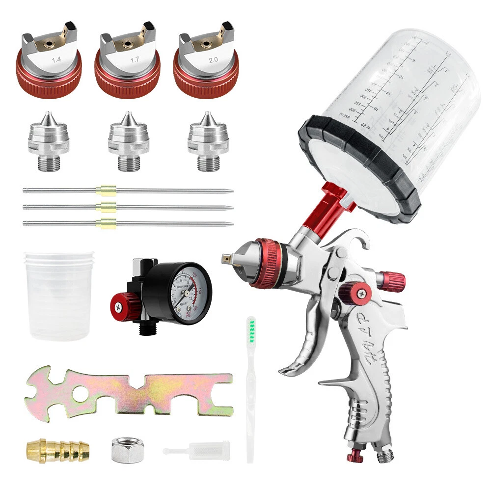 HVLP Air Paint Spray Gun Kits Gravity Feed Car Auto Primer 1.4/1.7/2.0MM Nozzles