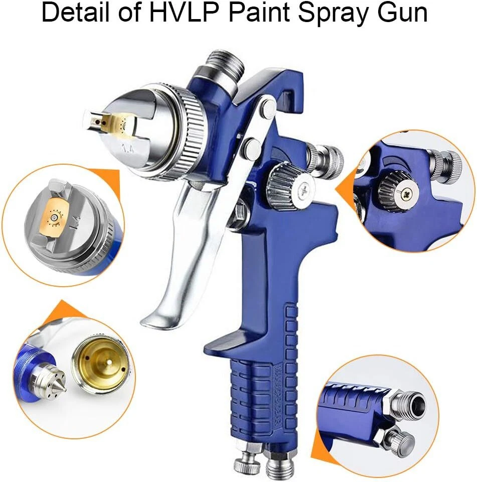 HVLP Spray Gun with Replaceable 1.4mm 1.7mm 2.0mm Nozzles Needle Cap Blue Product Details Brand: Hotorda Tank Volume: 600 Milliliters Color: Blue Recommended Uses For Product: Painting Material: Aluminum Application of HVLP Paint Spray Gun: This is a great car paint spray gun with 600cc cup for car primer,furniture surface painting,wall painting, art craft, automotive paint, cloth spray,base coatings. 3 Nozzle and 3 Needle: In order to achieve the effect of spraying, we will give three additional replaceable 1.4mm 1.7mm 2.0mm nozzle needle caps in this hvlp spray gun set, which can fully meet your needs.Please test and adjust the spray gun to the desired state with water before use.The pigment you are using needs to be diluted and operated according to the manufacturer's requirements to achieve a good spraying effect Practical Spray Gun: Use HVLP spray gun kit to reduce spraying. The gravity feed design helps to reduce the waste of residual material in the color cup, thereby helping you save costs and materials. What a practical spray gun it is! Durable and reliable: Materials of the needle and nozzle of the HVP spray gun are made of high-quality stainless steel, which is sturdy and durable, can be used for a long time, wear-resistant and scratch-resistant. Easy to Use and Clean: The nozzles of the hvlp spray gun is made of high-quality stainless steel, which is easy to clean the surface of the spray gun. In addition, the spray gun is lightweight and easy to operate, suitable for beginners and professionals. HVLP Spray Gun with 3 Nozzles 1.4mm 1.7mm 2.0mm, ideal for various surface spraying, suitable for car prime,automobile spraying, furniture spraying,cloth spraying,wall painting,base coatings and painting time and effort with a large spray pattern and enjoy a smooth spraying experience!