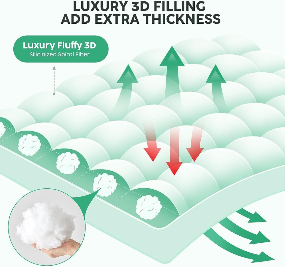 NUVOLETA Queen Mattress Topper - 100% Viscose Bamboo Cooling Cover in White