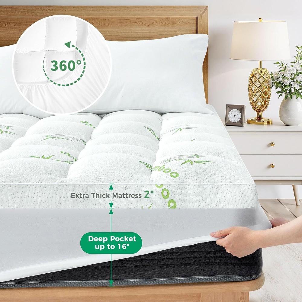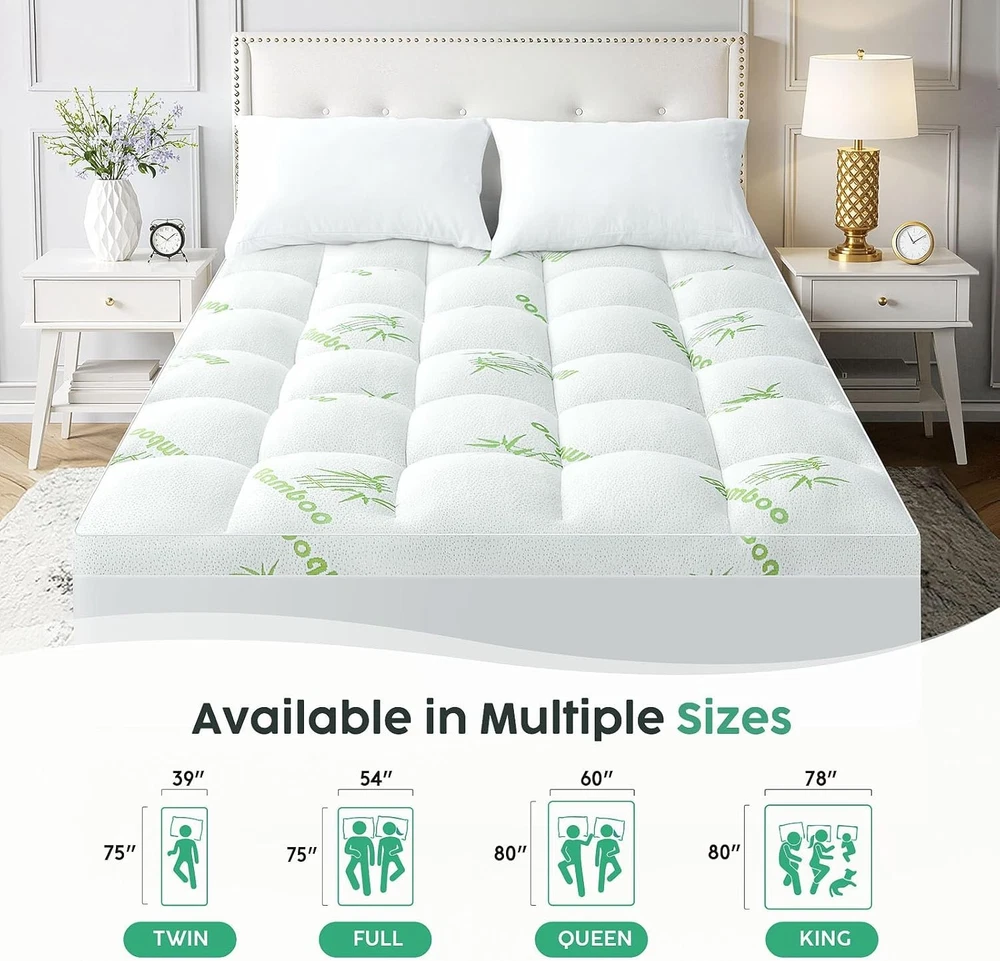 HYLEORY Queen Mattress Topper Viscose Made from Bamboo Pillow Queen, White Product Details Brand: HYLEORY Color: White Size: Queen Fabric Type: 60% Polyester +40% Viscose Made from Bamboo Special Feature: Pillow Top Closure Type: Pull On Product Care Instructions: Machine Wash Water Resistance Level: Not Water Resistant Age Range (Description): Adult Manufacturer: HYLEORY Product Dimensions: 80 x 60 x 1 inches Item Weight: 7.87 pounds mattress topper mattress topper mattress topper mattress topper mattress topper Experience ultimate comfort with our pillow top mattress topper queen. Crafted from premium 40% viscose material and 60% polyester
