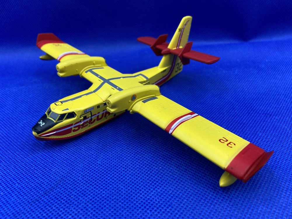 Hachette Canadair CL-415 Securite Civile Fire Plane Diecast Model Seaplane with Stand / MIB Scale not stated / 7.75 inches wide from wing tip to wing tip & 5.5 inches from nose to tail. This model and its stand are in unused, mint condition. The inner packaging, box and assembly instructions are in good condition, with just light wear. Please see all my photo's for more detail. Will be sent very well packaged Free U.K. returns ** Overseas buyers - I use eBay's Global Shipping Programme for overseas dispatch, and the postage cost for this is set by eBay. They do not offer a combined / reduced postage cost for multiple items bought with the G.S.P. **