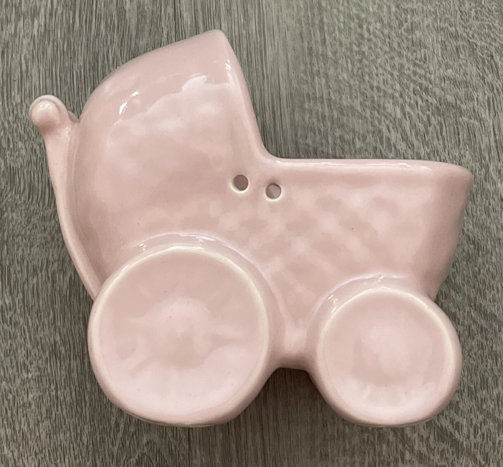 Haeger Pottery - Planter - Pink Baby Stroller Measures 5" x 3 1/4" x 5" Tall No Chips or Cracks
