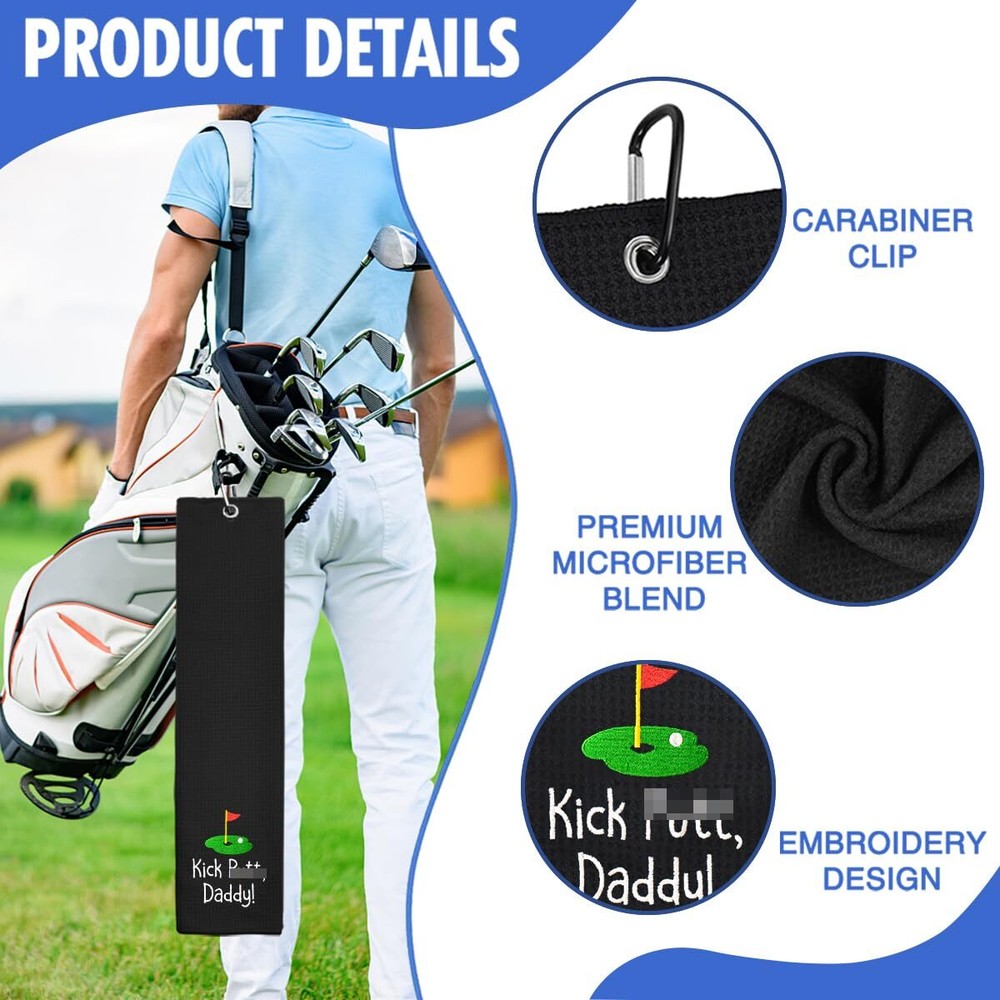 Hafhue Kick Put Daddy Embroidered Golf Towel for Dad – Essential Golf Accessories
