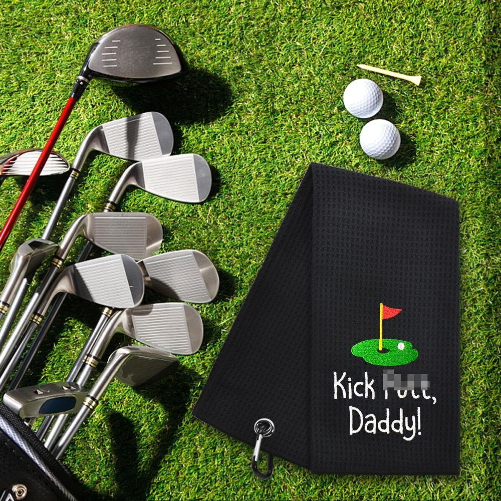 Hafhue Kick Put Daddy Embroidered Golf Towel for Dad Golf Accessories