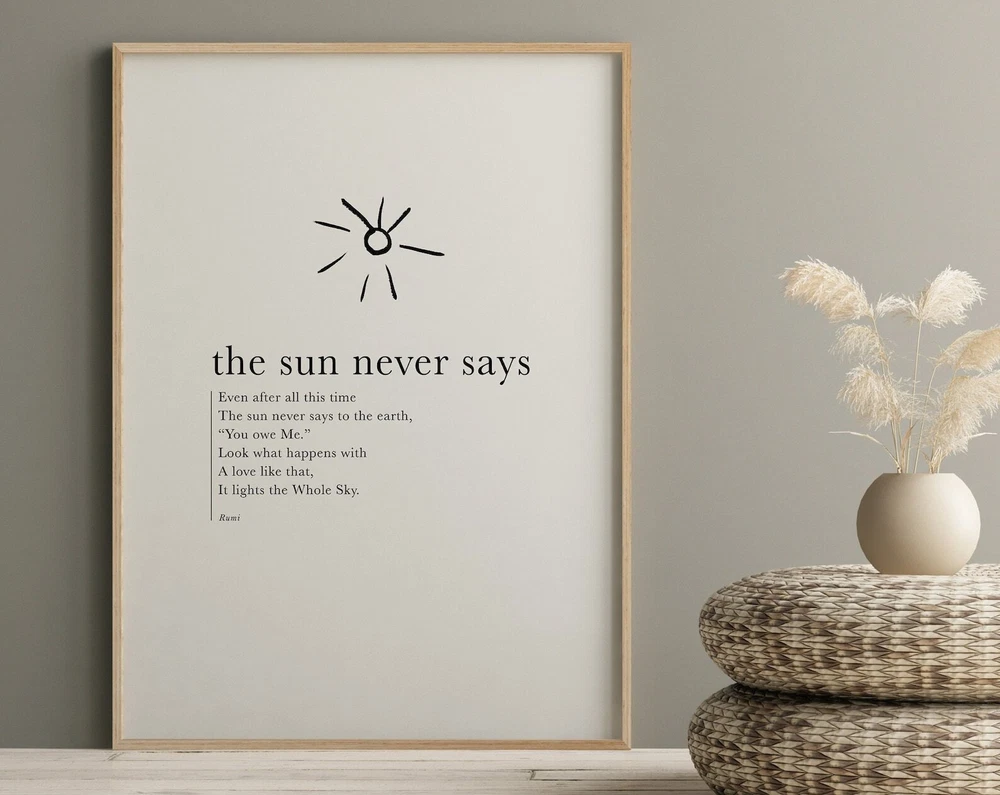 Hafiz Quote The Sun Never Says Hafiz Print Minimalist Wall Art Inspirational Quote Motivational Quotes Art Print Material: Premium luster photo paper Print type: Inkjet printing One side printed + The finish provides the highest possible resolution and color saturation + Lasts up to 200 years in color and 400 years in black-and-white + Printed on high-quality resin-coated photo base paper medium + Posters can be hung with double-sided tape, tacks, or framed + Hand washing with a gentle cry cloth is recommended for extended durability I will hand select the best choice of paper for your chosen design to ensure top quality results for a beautiful, bright and luxurious print. All prints are sealed in cellophane slips for protection during transportation, and are shipped in a protective cardboard envelope.