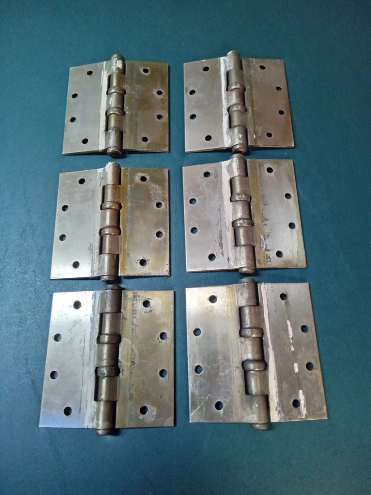 This lot of six Hager Heavy Duty 4 Hole Hinges are a good choice for any commercial improvement project. Made with high-quality polished brass material, these hinges are built to last. The hinge length measures 4.5 inches and the item width also measures 4.5 inches. These hinges are designed with no fixings supplied, making it easy for you to choose the right type of fixings for your specific project. The brand name Hager ensures durability and reliability for your needs. Add these hinges to your cart today to complete your door hardware needs. See photos for details.