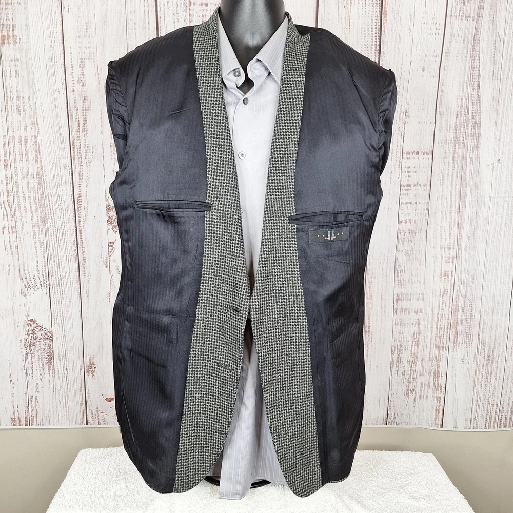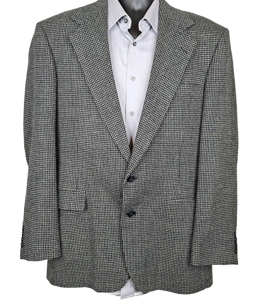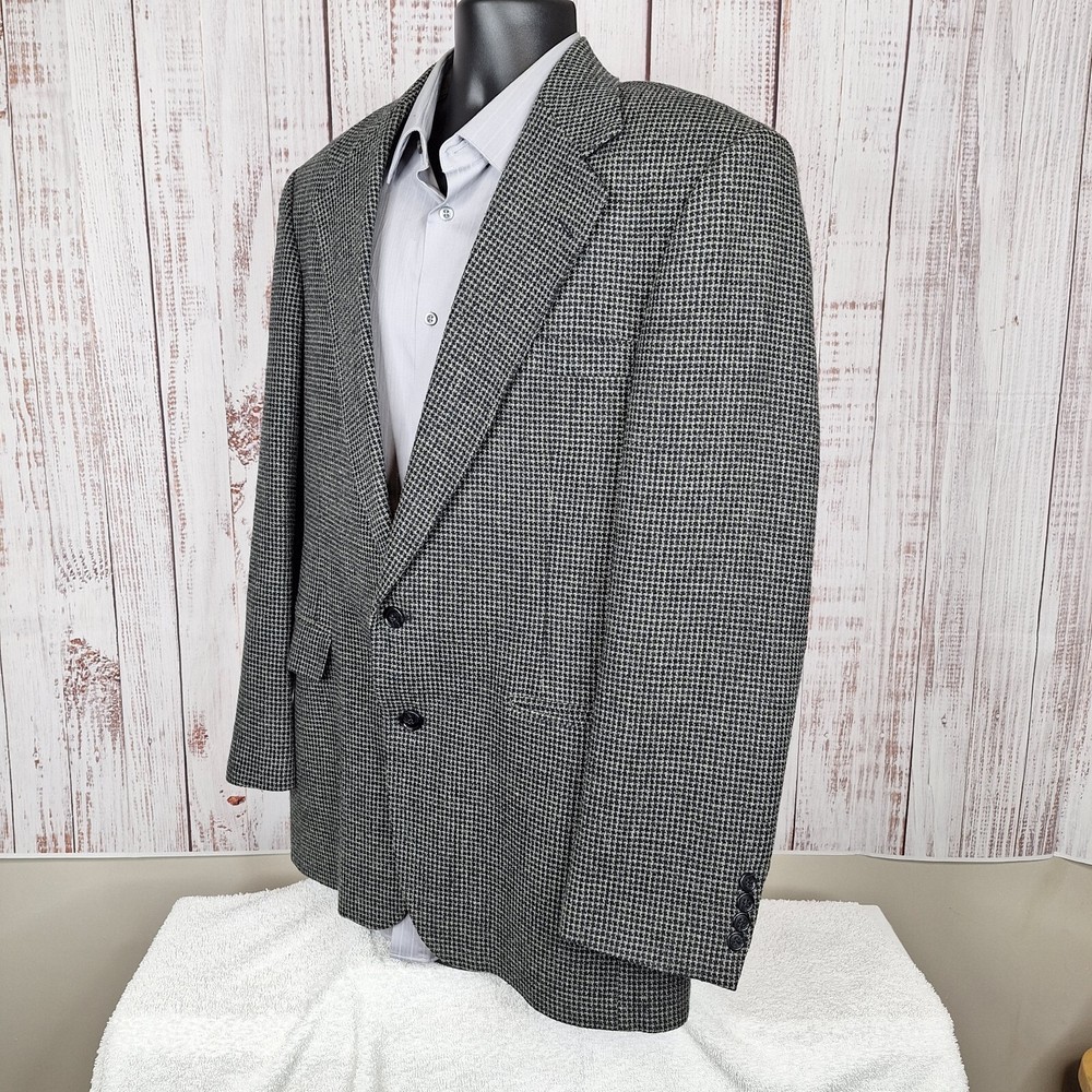 Haggar Black Label Jacket Blazer Mens 42R Gray Houndstooth Please check out the measurements before buying to insure fit.Fabric is a thicker weave Shirt Size on Label 42R Shoulder- Hem 30.00'' Shoulder- Shoulder 20.00'' Shoulder- Wrist 25.00'' Armpit- Armpit 22.00'' Top button 21.00'' Everything ships within a day. Feel free to message me with any questions. Thank you very much. 3/5/24