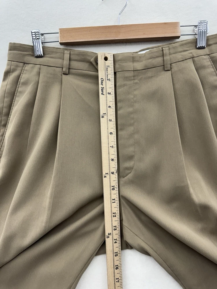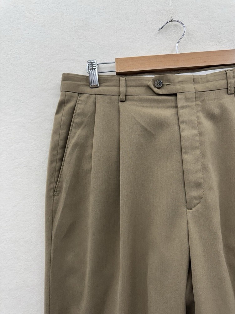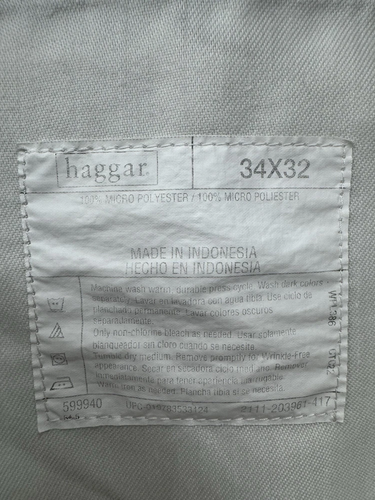 Elevate your wardrobe with these Haggar dress pants, perfect for any occasion. The classic fit and pleated front provide a comfortable and stylish look, while the beige khaki color and slash pockets add a touch of modern flair. The pants are made of lightweight and breathable polyester fabric, with easy care and stretch features for all-day comfort. These pants are versatile, suitable for travel, workwear, business, formal events, weddings, parties, or casual wear. The pants have a high rise waist of greater than 12 inches and a straight leg style. The Haggar Classic Fit model is designed for men with a waist size of 34 inches and an inseam of 31 inches. Made in Indonesia, these pants are a part of the Haggar product line, known for their quality and durability.