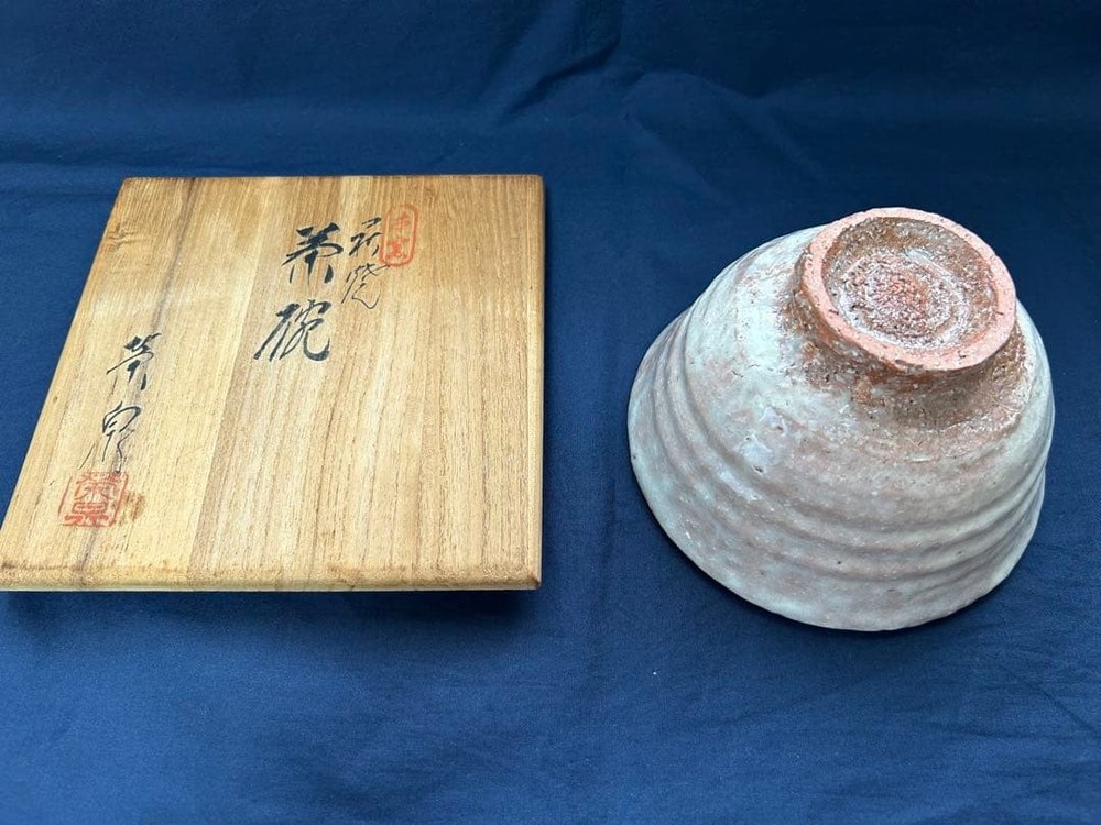 $ 199.69P971 Hagiyaki Tea Bowl Tsubakihide Kiln Takeshita Keizo 8cm New Condition