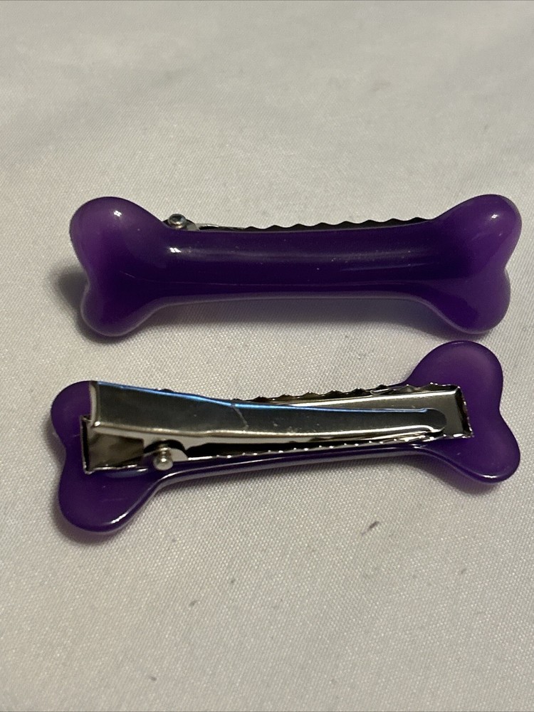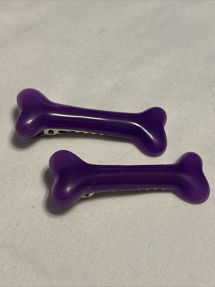 Add some edge to your hair with this set of two Fatal Impact hairslides. These hair clips are perfect for any occasion, whether you're heading to a party, getting married, or just running errands. The purple bones design is perfect for those who love Gothic, rockabilly, or pin-up styles. Made from high-quality acrylic material, these hairslides are suitable for all hair types, including curly, wavy, short, thin, and long hair. These clips are ideal for women, teens, and unisex wearers. Get ready to make a statement with these unique and stylish hair accessories.