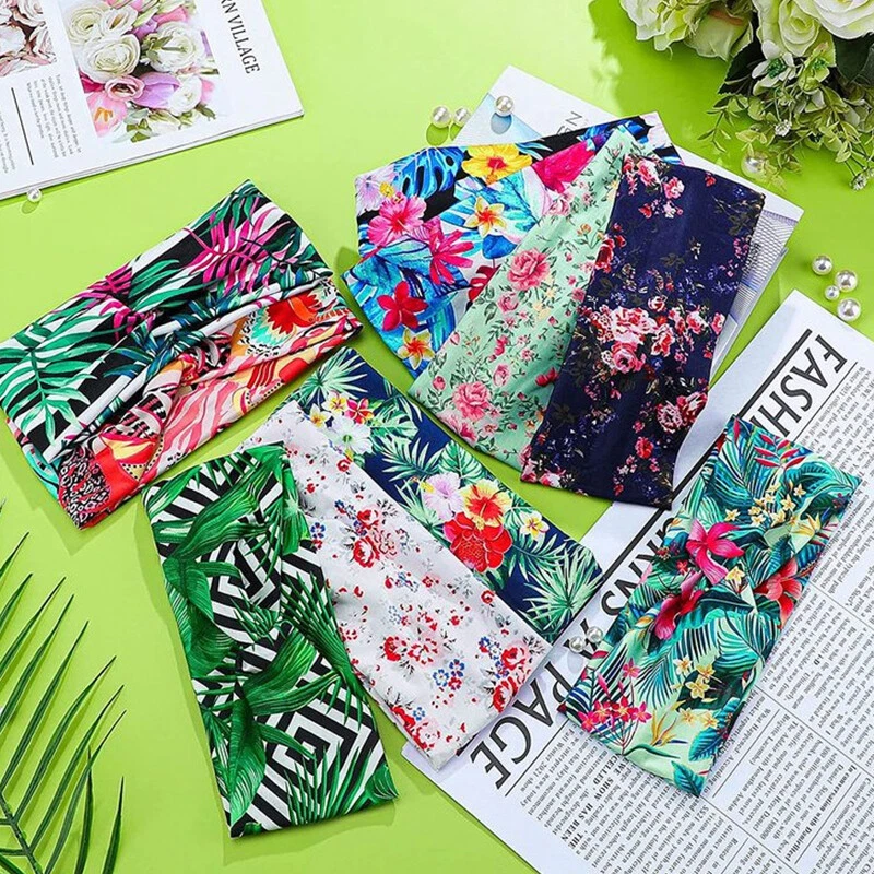Hair Accessories Green Leaves Flowers Cross Hairband Stretch Hair Band Soft